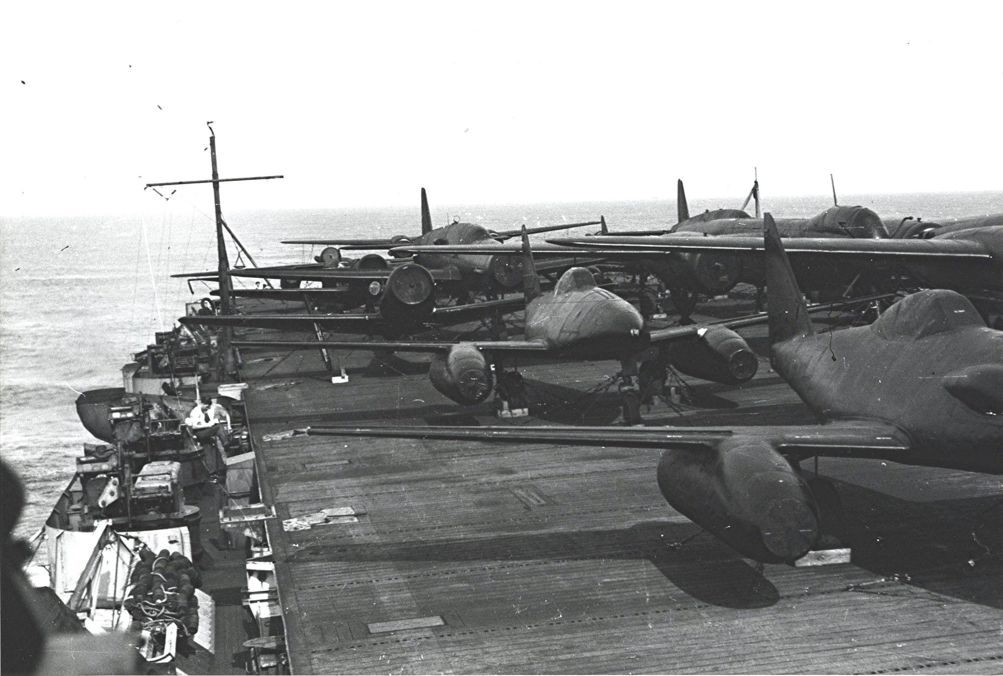 With the captured German aircraft secured at Querqueville, the next phase of Operation LUSTY would begin. This was to be Operation Seahorse, the shipment of the aircraft from Cherbourg to Newark, New Jersey. Most of the aircraft were to be transported aboard the American-built British escort carrier HMS Reaper (D82), while several other disassembled aircraft, along with thousands of documents and pieces of equipment, were to be shipped aboard the Liberty ship Richard J. Gatling. In total, the Reaper was to transport no less than: Ten Messerschmitt Me 262s, four Arado Ar 234 jet bombers, three Heinkel He 219 Uhu night fighters, two Dornier Do 335 Pfeil heavy-fighters, four Focke-Wulf Fw 190Ds, five Focke-Wulf Fw 190Fs, one Focke-Wulf Ta 152H, three Messerschmitt Bf 109s, two Bücker Bü 181 trainers, two Flettner Fl 282 helicopters, one Junkers Ju 88G, one Junkers Ju 388, one Doblhoff WNF 342 helicopter, one Messerschmitt Bf 108, and one North American F-6D Mustang (photo-reconnaissance variant of a P-51D).