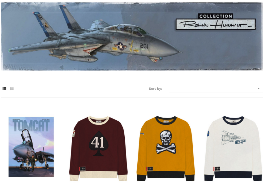 Barnstormer-USA’s new apparel collection showcases Hugault’s artistry through high-quality garments produced with premium materials, expert workmanship, and meticulous attention to detail. Each piece reflects the same commitment to historical accuracy and visual storytelling that defines Hugault’s illustrations. The collection also features designs inspired by the true story of the F-14A NH-103, one of the central aircraft depicted in Hugault’s latest project, TOMCAT.