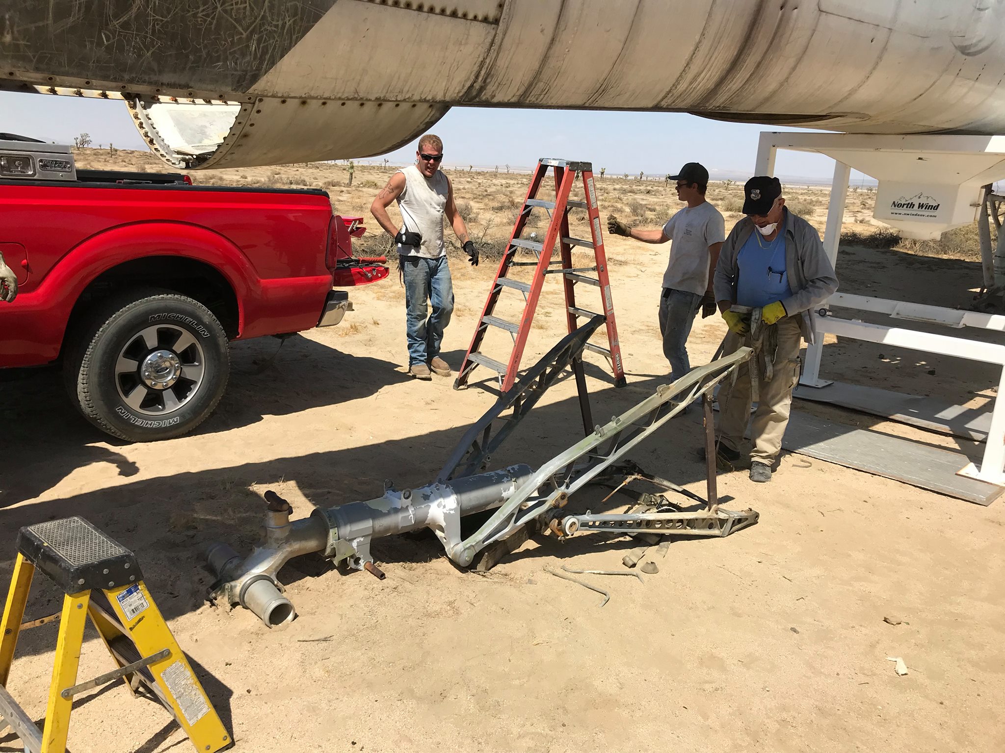 From 2016 to 2017, YB-58A Hustler 55-0666 was carefully disassembled at Chanute and loaded on oversize truck trailers hauled by Worldwide Aircraft Recovery of Bellevue, Nebraska, one of the most experienced firms in moving aircraft across the United States. On September 25, 2016, the first truckloads of parts from Hustler 55-0666, including the Number 1 and 4 engine pods with afterburner sections and nozzles, nose radome, and other assorted panels, arrived at Castle Air Museum’s restoration hangar. By April 2017, ground at Castle was prepared to place the Hustler between the museum’s Boeing B-52 Stratofortress and Fairchild C-123 Provider, and on August 18, 2017, the fuselage and wings of 55-0666 arrived at Castle to be reassembled onsite. Since then, the aircraft has been slowly coming together, as the aircraft needed to be treated for corrosion before reassembly could begin. After the wings were reattached in September 2017, 55-0666’s tail and landing gear were reattached in November, and in September 2018, a new nose gear was obtained from its sister ship, YB-58A 55-0665, down at Edwards AFB.