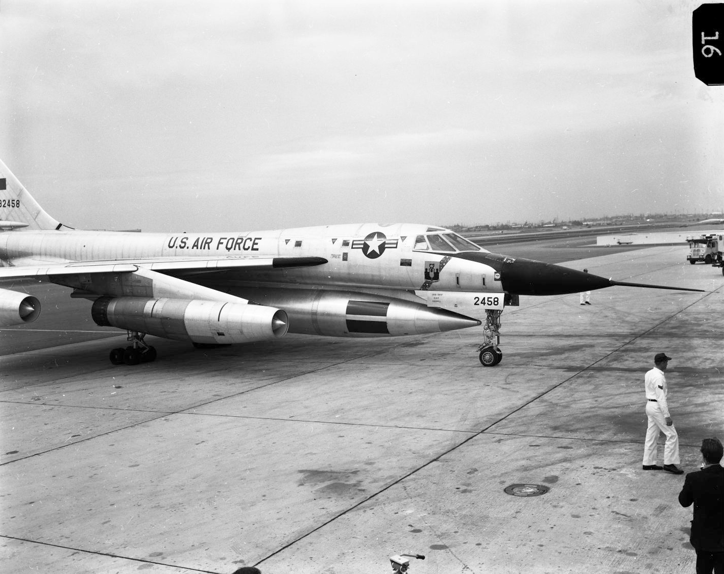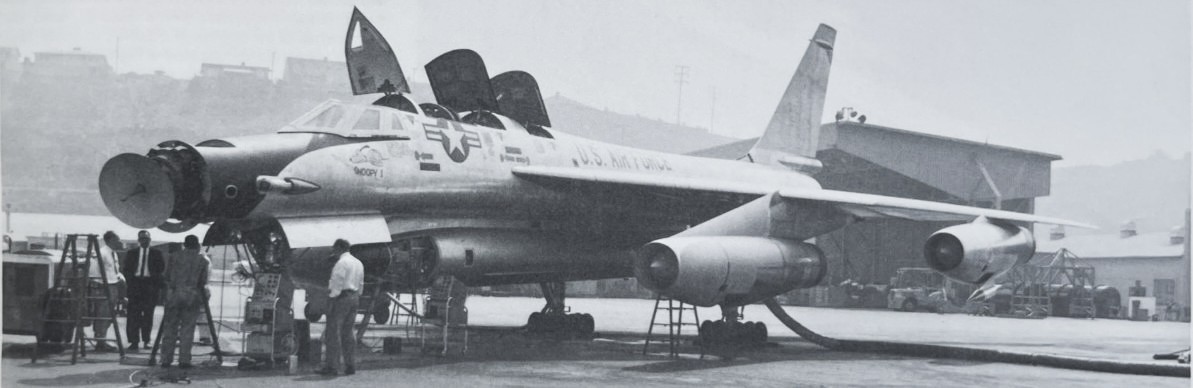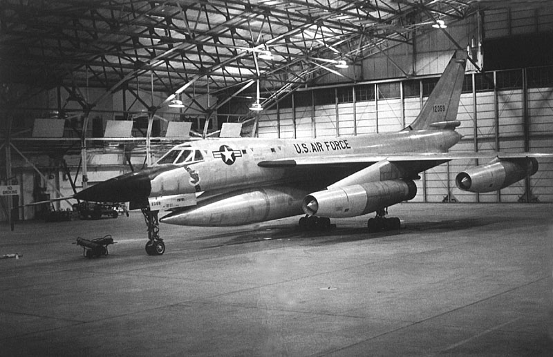 The installation of the radome for the AN/ASG-18 Fire Control System lengthened YB-58A 55-0665 added nearly seven feet to the aircraft’s length, and the new distinctive shape of YB-58A 55-0665’s nose would lead to the aircraft being given the name Snoopy, after the iconic character from the Peanuts comic strip. However, before YB-58A Snoopy had ever flown with the new radar system, the XF-108 program was cancelled before a single example was built, in large part due to the program becoming too costly. However, the AN/ASG-18 system would be reworked to be used on a new interceptor, the Lockheed YF-12, which was an adoption of the Lockheed A-12 reconnaissance aircraft, capable of reaching speeds above Mach 3, and which was further adapted into the SR-71 Blackbird. As Lockheed’s Skunk Works division worked under tight secrecy on the YF-12, test pilots and engineers at Edwards AFB flew YB-58A 55-0665 in extensive flight tests with the AN/ASG-18 Fire Control System from 1960 to 1963, when the YF-12 made its first flight on August 7, 1963. In addition to the new radome in the nose, 55-0665 would fly with a special pod mounted to its underside, carrying the payload of AIM-47 missiles, and would fire AIM-47s at target drones, from unmanned Lockheed QF-80 Shooting Stars to Vought Regulus cruise missiles.