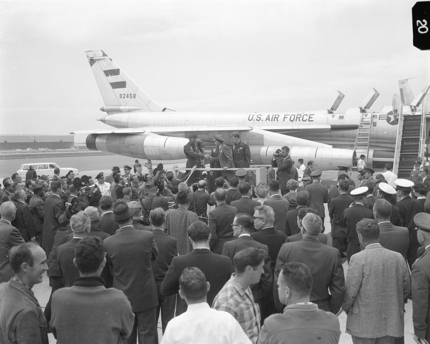 For over 100 years, the National Museum of the United States Air Force at Wright-Patterson Air Force Base in Dayton, Ohio has been one of the premier aviation museums in the world, and is home to many of the most significant aircraft in the history of American military aviation, from the Wright Brothers to the Lockheed-Martin F-22 Raptor. Many of the most popular aircraft can be found inside the museum’s Eugene W. Kettering Cold War Gallery, including the most well-preserved Convair B-58 Hustler in existence. Built as construction number 61, B-58A 59-2458 was assigned to the 43rd Bomb Wing at Carswell AFB, Fort Worth, Texas. Given Fort Worth’s history with the cattle trade of the Old West period and the Texas Longhorn, the aircraft built and stationed in Fort Worth was given the name Cowtown Hustler. On March 5, 1962, Cowtown Hustler, callsign Tall Man Five-Five, and another B-58A, callsign Tall Man Five Six, would partake in a record-setting flight to break the nonstop speed record from Los Angeles to New York and back again. Inside B-58A 59-2458 Cowtown Hustler were aircraft commander Captain Robert G. Sowers, navigator/bombardier Captain Robert MacDonald, and defensive systems operator First Lieutenant John T. Walton, all from the 65th Bombardment Squadron of the 43rd Bombardment Wing. After four months of training prior to the flight, the two B-58s took off from Carswell AFB, Texas at sunrise, flying at Mach 2 towards Los Angeles. Upon reaching the airspace above Los Angeles, they flew out over the Pacific Ocean to be refueled midair by a Boeing KC-135 Stratotanker. This would be enough fuel for them to fly nonstop to Kansas, where they were to be refueled by another KC-135 before flying through a radar gate to officially start the speed run to New York.