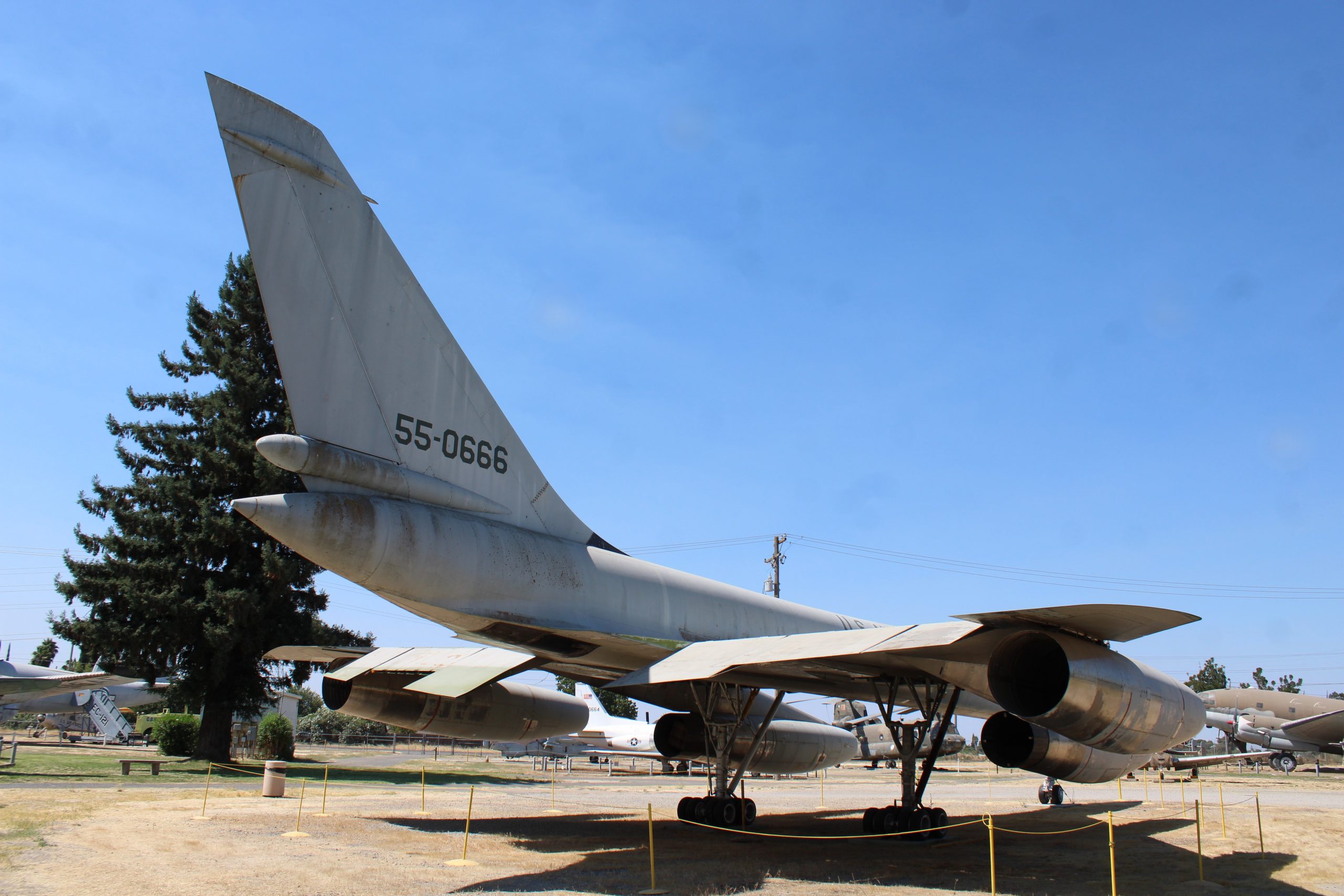 About 230 miles north of Edwards Air Force Base, Castle Airport, formerly Castle Air Force Base, is home to the largest air museum in California’s Central Valley, the Castle Air Museum. We have previously covered several aircraft on display and under restoration at Castle, including this particular B-58 Hustler, YB-58A 55-0666. (See our previous article on this aircraft HERE). Built as construction number 7, YB-58A 55-0666 made its first flight on March 20, 1958. Shortly after this flight, the aircraft was retained for additional flight tests with Convair, being fitted with an experimental General Electric YJ79-GE-5 jet engine mounted on a special centerline pod. On November 8, 1958, 55-0666 flew for 32 minutes at a sustained Mach 2 velocity with its YJ79-GE-5 engine, along with its four stock J79 engines. Though the aircraft was formally transferred to the US Air Force on April 29, 1959, 55-0666 remained with Convair for further testing and evaluation, and was later redesignated as a YRB-58A on May 1, 1959.