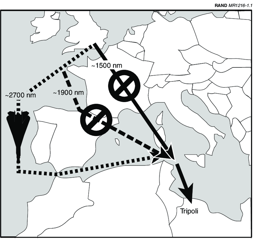 As strategic bomber reach grew, a few years after the RAF’s Black Buck missions, U.S. Air Force (USAF) F-111 fighter-bombers conducted their own long-range combat strike. Dubbed “Operation El Dorado Canyon,” the mission targeted Libyan strongman Muammar Qaddafi. Allowing safe haven for extremist groups, Qaddafi provided state sponsorship for terrorist activities and housed training camps in the North African country. Intent on destroying these camps and sending a message to the rogue leader, USAF and Navy aircraft conducted a joint attack on April 14, 1986. The strike included the USAF’s 48th Tactical Fighter Wing stationed at Lakenheath in the U.K., electronic support from five EF-111s of the 42nd Electronic Combat Squadron at RAF Upper Heyford, and carrier aviation support from the U.S. 6th Fleet’s USS America and Coral Sea. However, some European countries denied overflight rights to the U.K.-based jets, causing them to fly around the Iberian Peninsula and then into the Mediterranean via the Strait of Gibraltar.