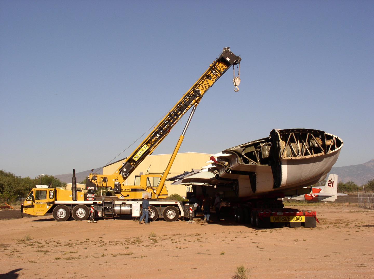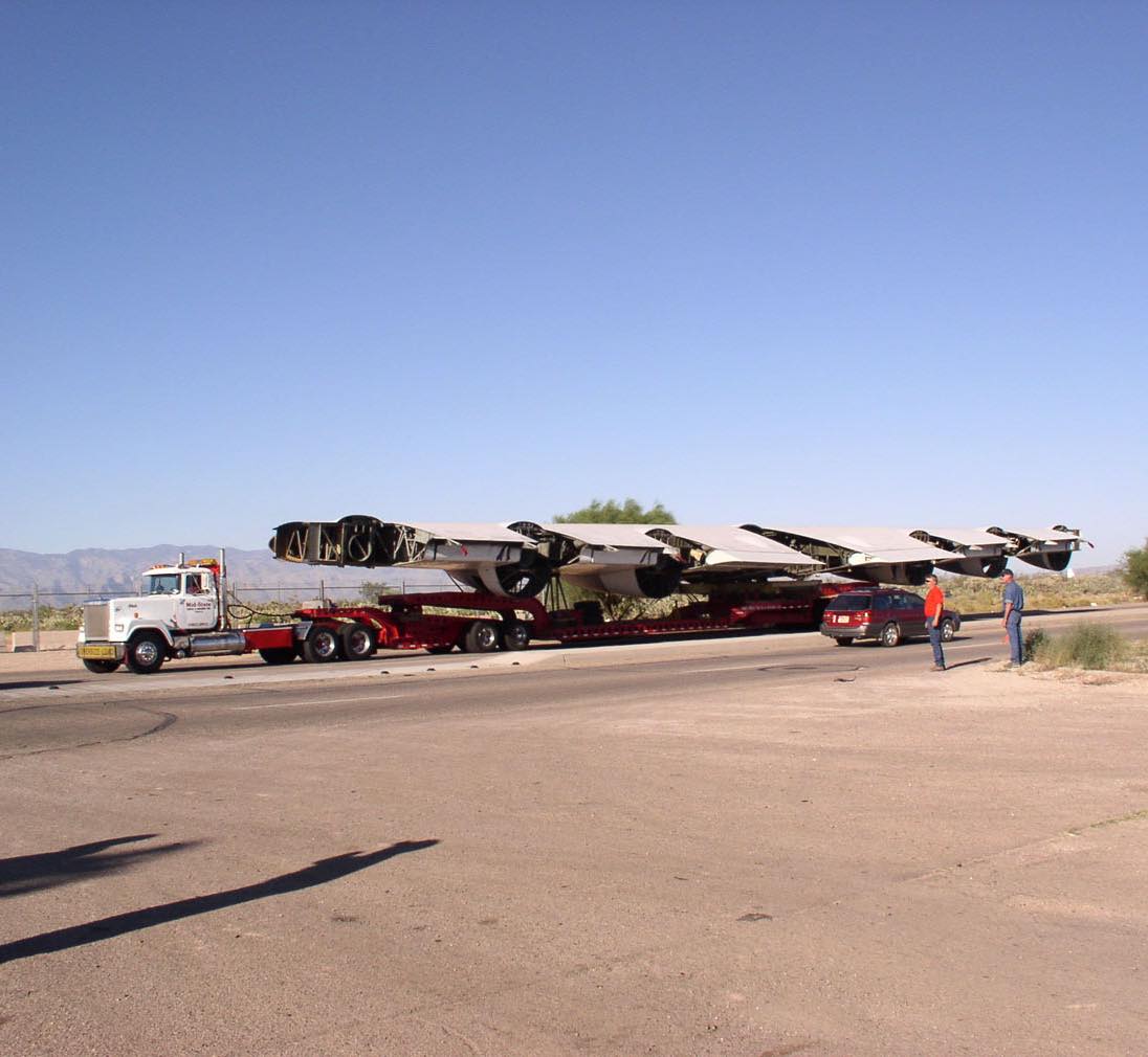 By the early 1990s, though, B-36J 52-2827 fell on hard times as it deteriorated further in the Texas weather, and the staff had little in the way of funds for detailers. Then, Carswell Air Force Base itself became one of many Air Force Bases to be closed as a result of the downsizing of the U.S. armed forces in the wake of the Soviet Union’s collapse. Once again, it was feared that the Peacemaker would be scrapped if nothing was done to save it. Indeed, although several fighters and trainers displayed at the Southwest Aerospace Museum were transferred to other locations, B-52D 55-0063 was later scrapped at Carswell. At one point, the Air Force considered sending the bomber up to Ellsworth Air Force Base near Rapid City, South Dakota, to be displayed with other aircraft up there. This went as far as uniformed but unnamed personnel removing and transporting engine nacelle panels and other parts of the aircraft to Ellsworth, with the idea of returning to Fort Worth to begin disassembling the rest of the aircraft. News of this outraged Fort Worth aviation officials, and with Fort Worth’s mayor Kay Granger, Texas Congressman Pete Geren, Melvin Haas (CEO of the Fort Worth Aviation Heritage Association), and others coming to the defense of the Peacemaker, forcing the Air Force to return the parts taken to Ellsworth back to Fort Worth. By October 1992, with Carswell AFB’s facilities set to be transferred to the US Navy, the Southwest Aerospace Museum and a group called the Aviation Heritage Association merged to save B-36J 52-2827. With the full support of the city of Fort Worth, the aircraft was moved to a hangar in Air Force Plant 4, the former Convair/General Dynamics facility where it was built, now operated by Lockheed Martin. Dozens of volunteers, many being retired Convair employees who had built the B-36 Peacemakers in the 1940s and 1950s, put in up to 40,000 manhours working on the aircraft, and completed their restoration in 1994. Meanwhile, the Aviation Heritage Association began efforts to establish a dedicated B-36 Peacemaker Museum at Alliance Airport (now Perot Field Fort Worth Alliance Airport) to house the bomber when it was completed. Unfortunately, though, as Lockheed-Martin had to use the facility to build the new F-22 Raptor and make preparations for the facility’s involvement in the upcoming Joint Strike Fighter (JSF) program that led to the development of the F-35 Lightning II, the last B-36 had to leave its birthplace by March 2003. At the same time, the effort to build a museum large enough to house the B-36 never got enough traction to proceed, and division came between the B-36 Restoration Team and the Aviation Heritage Association over where to place B-36J 52-2827. On April 11, 2003, the B-36 Peacemaker Museum Inc. was chartered, and four days later, the Fort Worth City Council unanimously approved a resolution that the B-36 City of Fort Worth remain within the incorporated city limits of Fort Worth, with alternate plans for displaying the bomber either at Dallas-Fort Worth or at Meacham Field. In 2005, however, the National Museum of the United States Air Force, which still owned the title to the aircraft, felt that none of the parties in Fort Worth had the resources to restore and display the last Convair B-36 Peacemaker, and began looking for another affiliate museum to display it. Eventually, it was decided that B-36J 52-2827 would be transported to the Pima Air and Space Museum in Tucson, Arizona, with Scott Marchand, Pima’s director of collections and restoration, overseeing the transportation effort. Having already been disassembled, the aircraft would be carried to Pima as part of 11 truckloads, with workers braving the Texas July heat and humidity to get the pieces of the Peacemaker loaded up. The forward and aft fuselage sections were transported separately, then came the engines, tail assembly, landing gear, and outer wing panels, with the journey for each of these oversized loads taking three days traveling at 50 mph down Interstate 20 from Fort Worth through Pecos down to Interstate 10 to head directly for Tucson. But the most challenging part of the move was the airplane’s 20-ton center wing section.