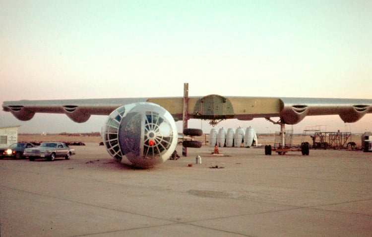 Museum volunteers also repainted the aircraft to its original colors when it was flown by the 28th Strategic Reconnaissance Wing. By this point, Castle Air Force Base itself was shutting down, but the museum would remain in operation as the former air force base was converted into a civilian airport. In addition to the aircraft, the Castle Air Museum displays the deactivated casing of a Mk 17 thermonuclear bomb recovered from Edwards Air Force Base, with the Mk 17 being the largest nuclear device dropped from an American bomber, and the B-36 was the only aircraft capable of carrying it.