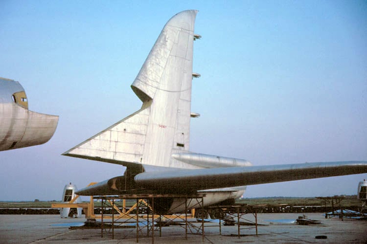 While no longer an intact airframe, no list of preserved B-36 Peacemakers would be complete without mention of what was once the oldest remaining example of the type, and while it is no longer in one piece, parts of it still remain to this day. This was YB-36 42-13571, the second ever B-36 built and the pre-production prototype. As the first B-36, XB-36 42-13570, was being constructed at what was then the Consolidated-Vultee plant in Ft Worth, 42-13571 was selected to become the pre-production prototype of the Peacemaker on April 27, 1945. Two years later, on December 4, 1947, YB-36 42-13571 made its first flight with Convair test pilot Beryl Erickson at the controls. The YB-36 differed from the XB-36 in that the YB-36 had a raised roof with a high visibility canopy and redesigned forward crew compartment, both of which became common features on the production model B-36s. The YB-36 was also fitted with improved turbosuperchargers, which allowed the aircraft to exhibit much better performance than the XB-36. For example, the aircraft climbed above 40,000 feet on its third test flight on December 19, 1947.