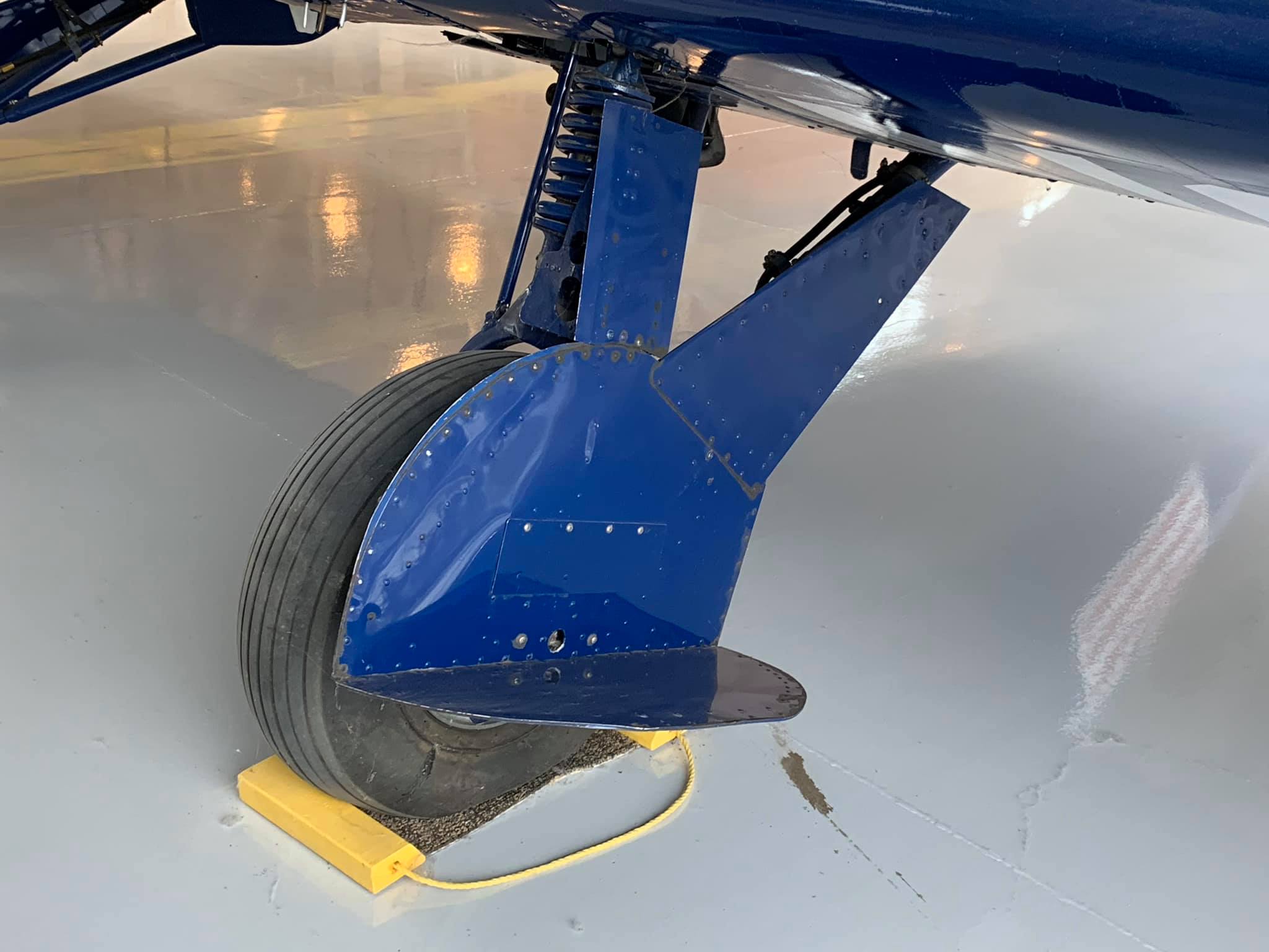 Left landing gear of Beech Model 17 Staggerwing NC50959. (Randy Malmstrom)
