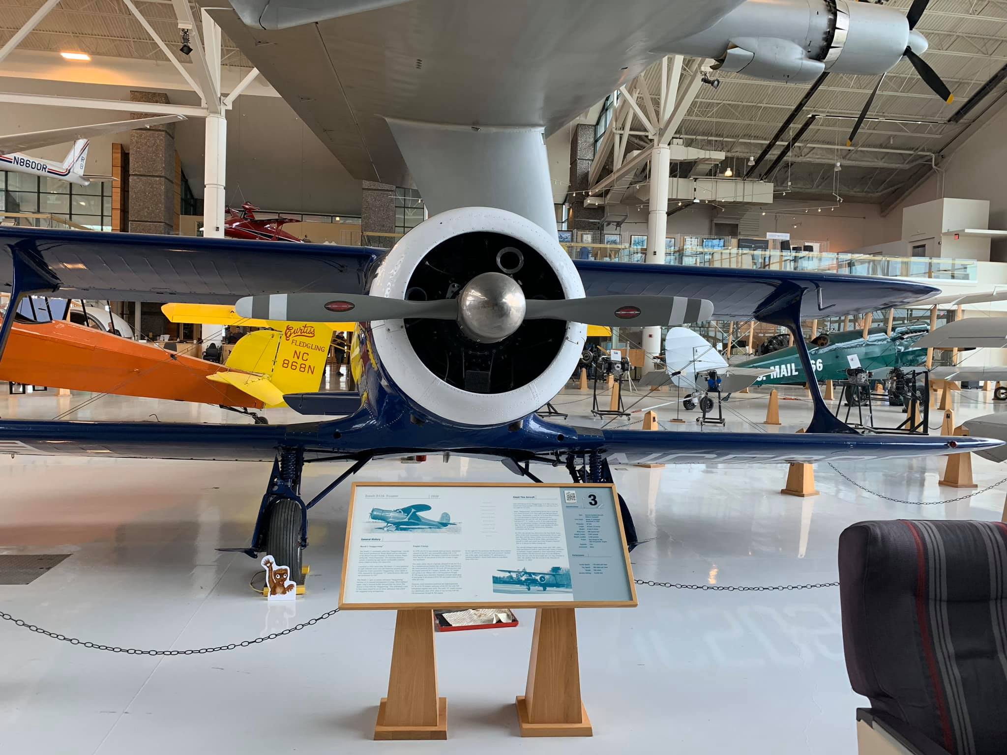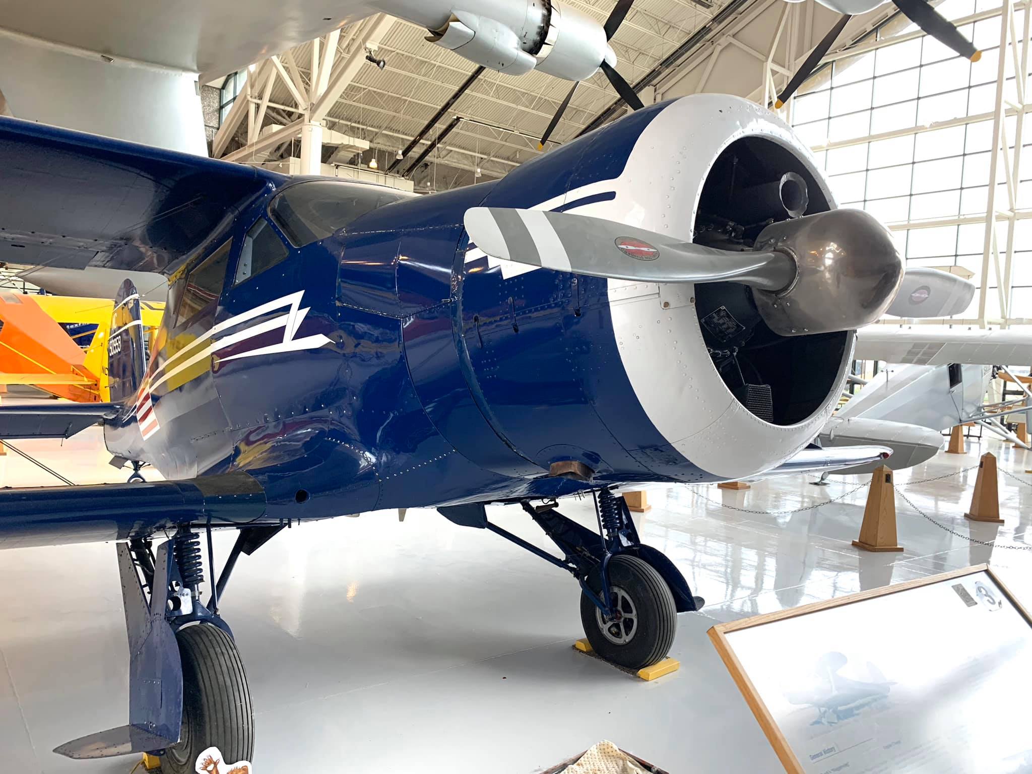 In all, about 400 of these aircraft were delivered to the U.S. Army Air Forces and U.S. Navy during World War II for utility, reconnaissance, and transport duties – including U.S. air attaches at the American Embassies in London, Paris, and Rome. Approximately 118 of them were requisitioned from private owners for military use during WWII. The stagger wing configuration provides excellent maneuverability and mitigates stall tendencies while maximizing pilot visibility. My photos at Evergreen Aviation & Space Museum in McMinnville, Oregon.