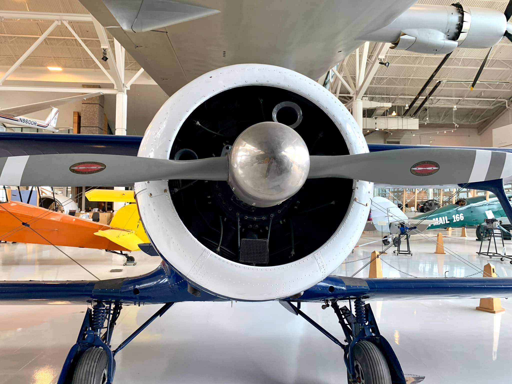 Propeller and engine of Beech Model 17 Staggerwing NC50959 at the Evergreen Aviation and Space Museum. (Randy Malmstrom)