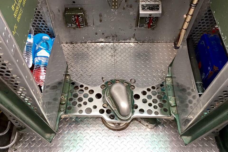 This restoration has the top turret gunner’s platform (no canvas bags for spent shell casings or gunner’s canvas strap for a seat – I was told a visitor got tangled in it and almost choked), bombardier/toggler’s yoke (although no gun sight), a rear-facing radio room gun on a rolling track, and the crew relief funnel and tube (which you can see in detail in the waist by the ball turret – this tube drains at the Cheyenne tail turret as you can see). Pilots and crew often found it better to just use the bomb bay, much to the consternation of the ball turret gunner (he would have to be sure and turn the turret, so it faces backward). And of course, at -50 degrees it was hazardous, and I know of accounts of being crew getting frozen to the funnel.