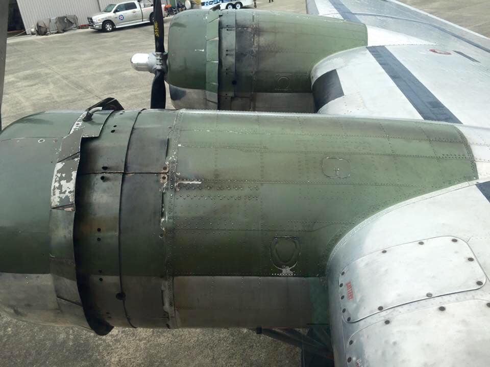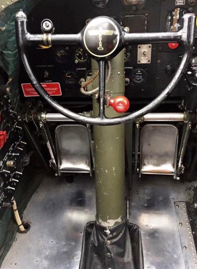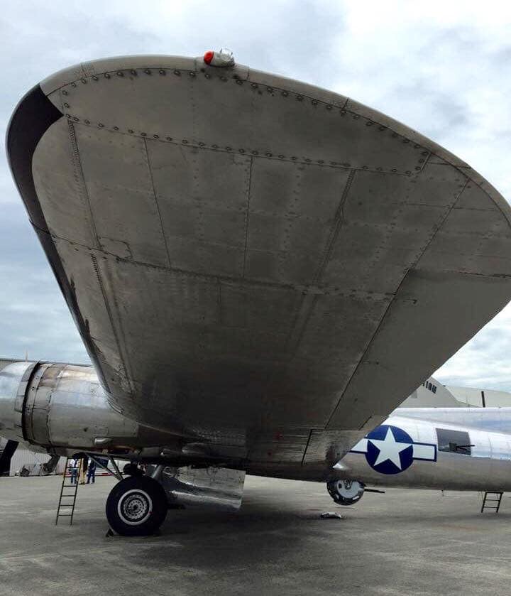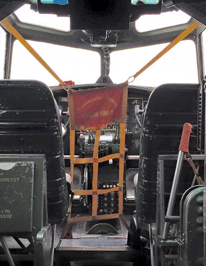It was acquired in 1978 by the Commemorative Air Force (“CAF” which at that time was known as the Confederate Air Force) with nose art “Class of ’44” and is registered to the CAF Airpower Museum. It is now painted with the tail code and colors of an aircraft of the 457th Bomb Group, 750th Bomb Squadron, which was based at Glatton, England, during WWII, and the nose art bears the World War II peekaboo pinup pose of the film star and entertainer Betty Gable – permission of the painting was personally given by her widower, trumpeter Harry James.