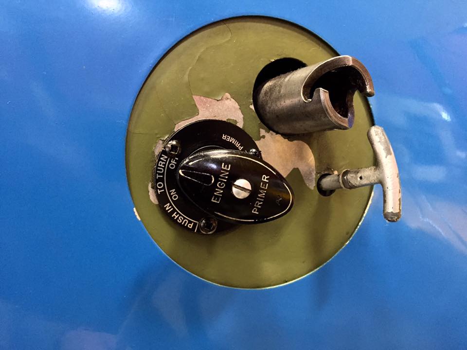 Engine primer toggle and pump on the side of the Heritage Flight Museum’s Boeing-Stearman PT-13. (Randy Malmstrom)