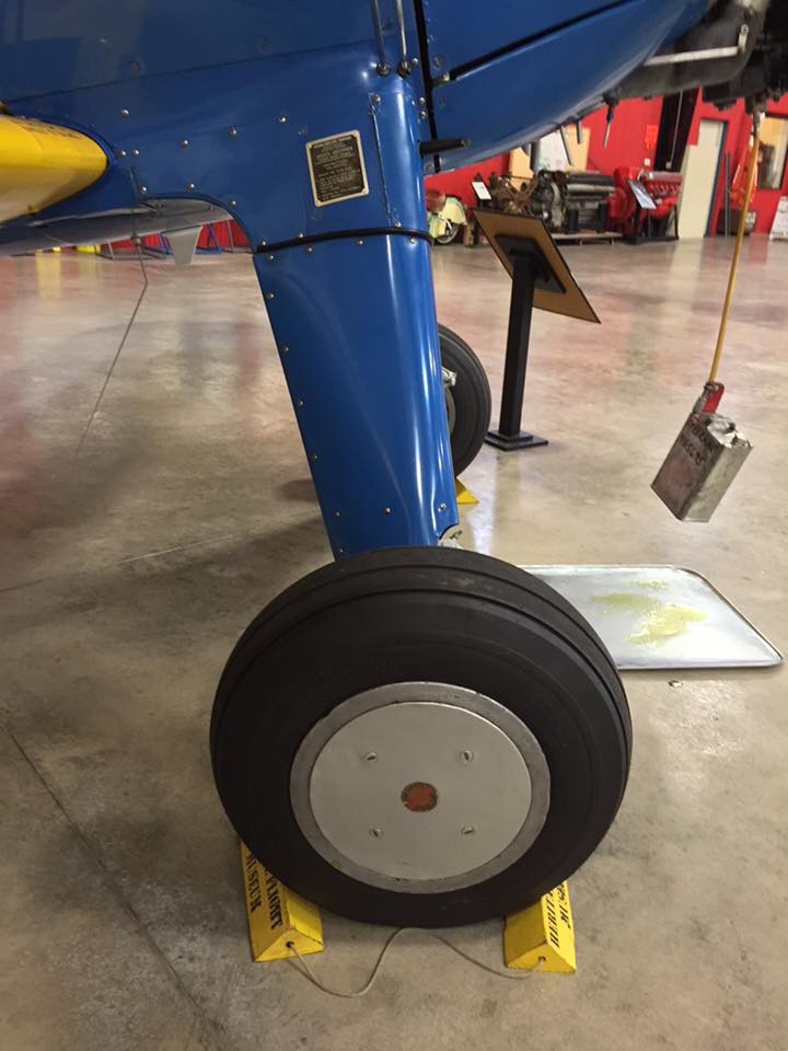 Landing gear leg of the Boeing-Stearman PT-13 on display at the Heritage Flight Museum. (Randy Malmstrom)