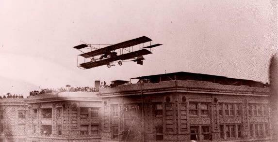 Silas Christofferson taking off from the roof of the Multnomah Hotel in Portland, 1912. (Portland History)