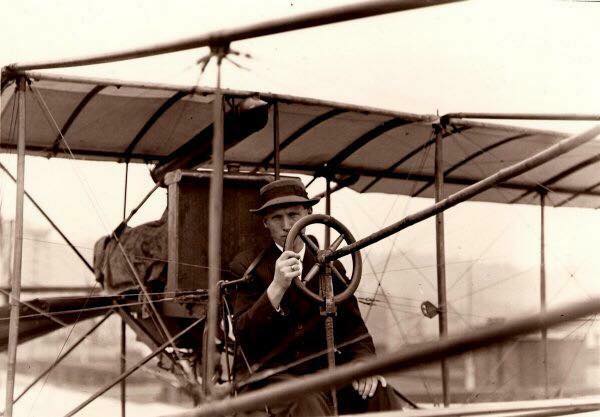 Silas Christofferson in his Curtiss Model D atop the Multnomah Hotel. (Portland History)