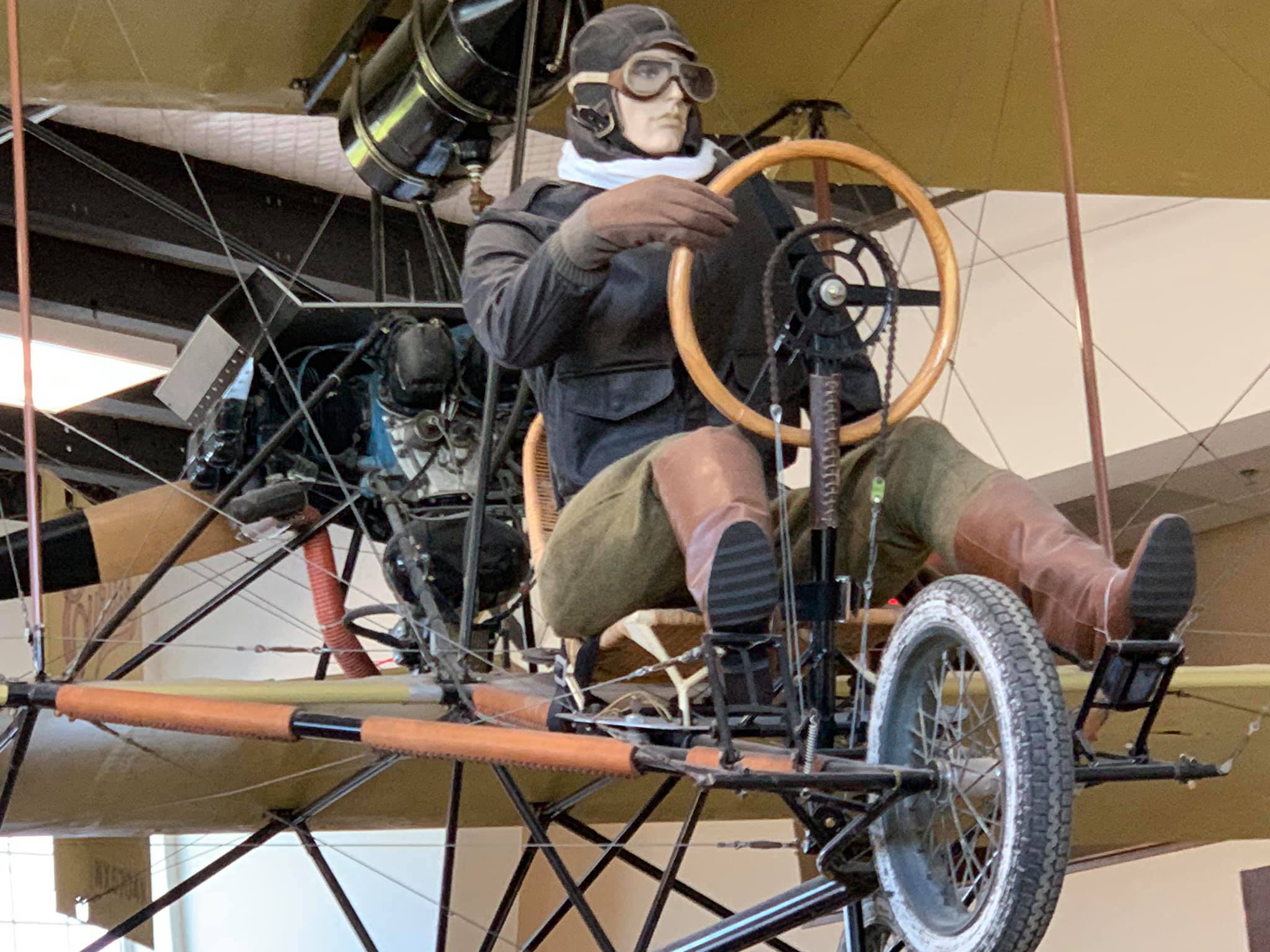 Pilot mannequin in the Curtiss Model D Pusher NX7504N on display at the Western Antique Aeroplane and Automobile Museum. (Randy Malmstrom)