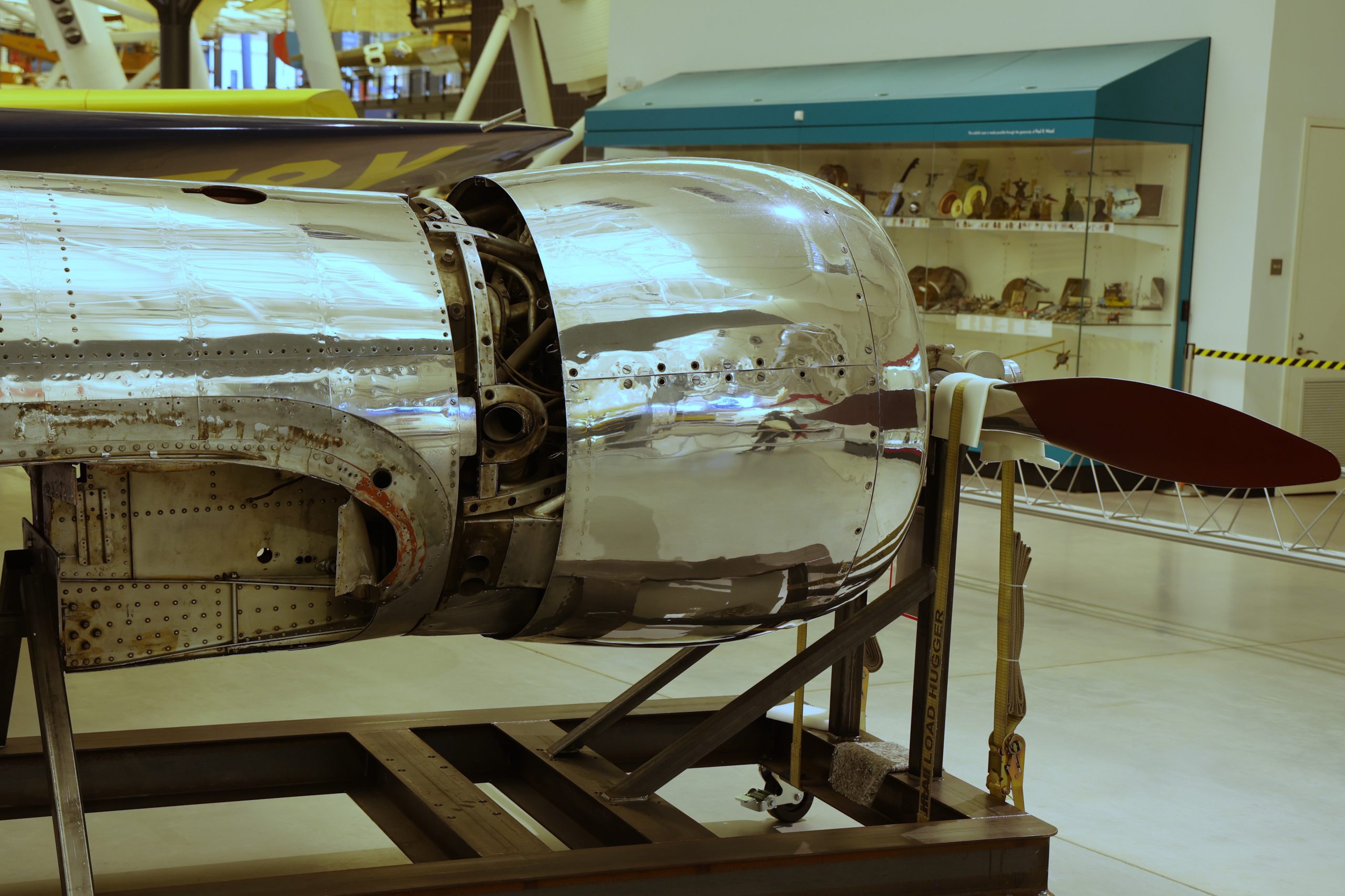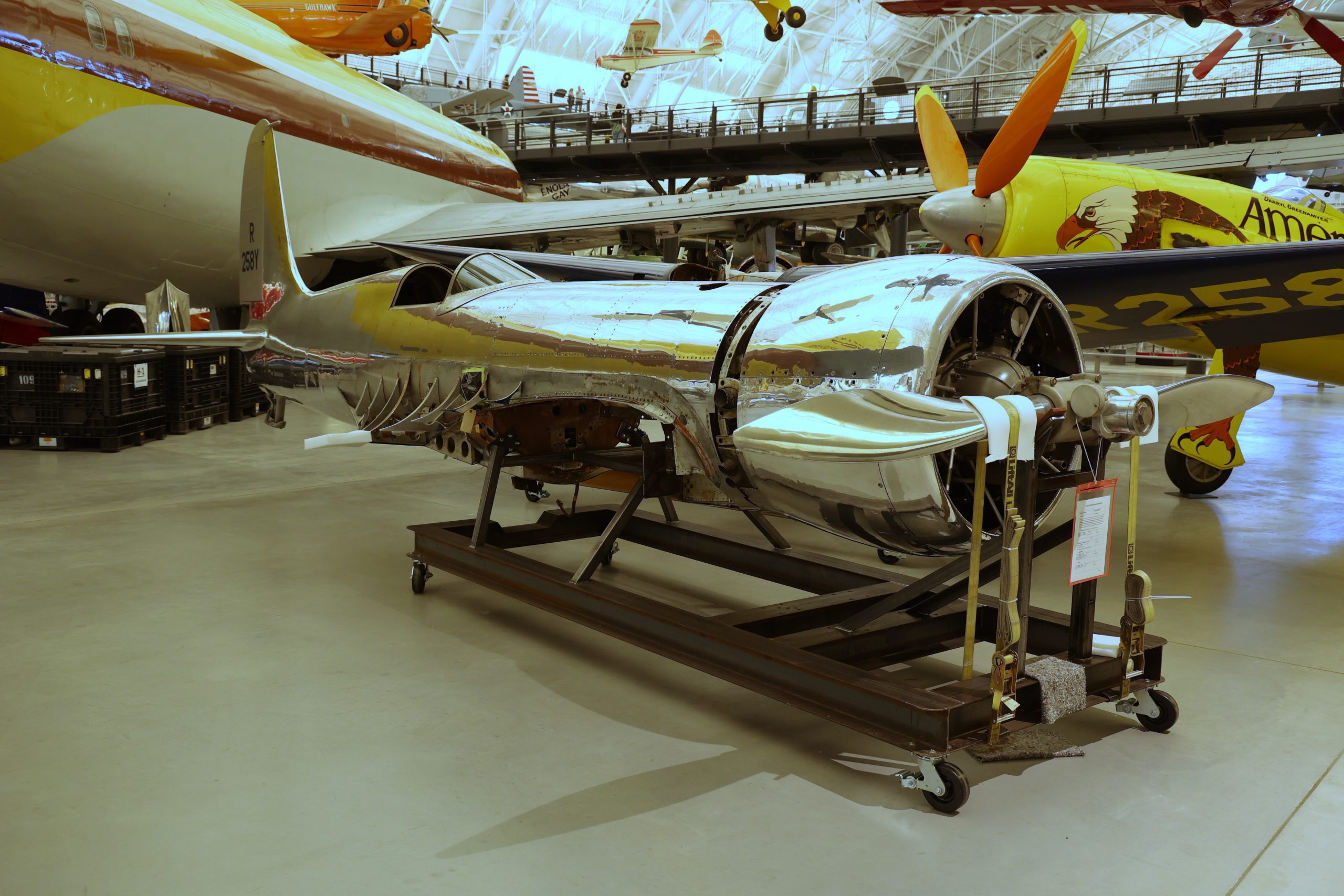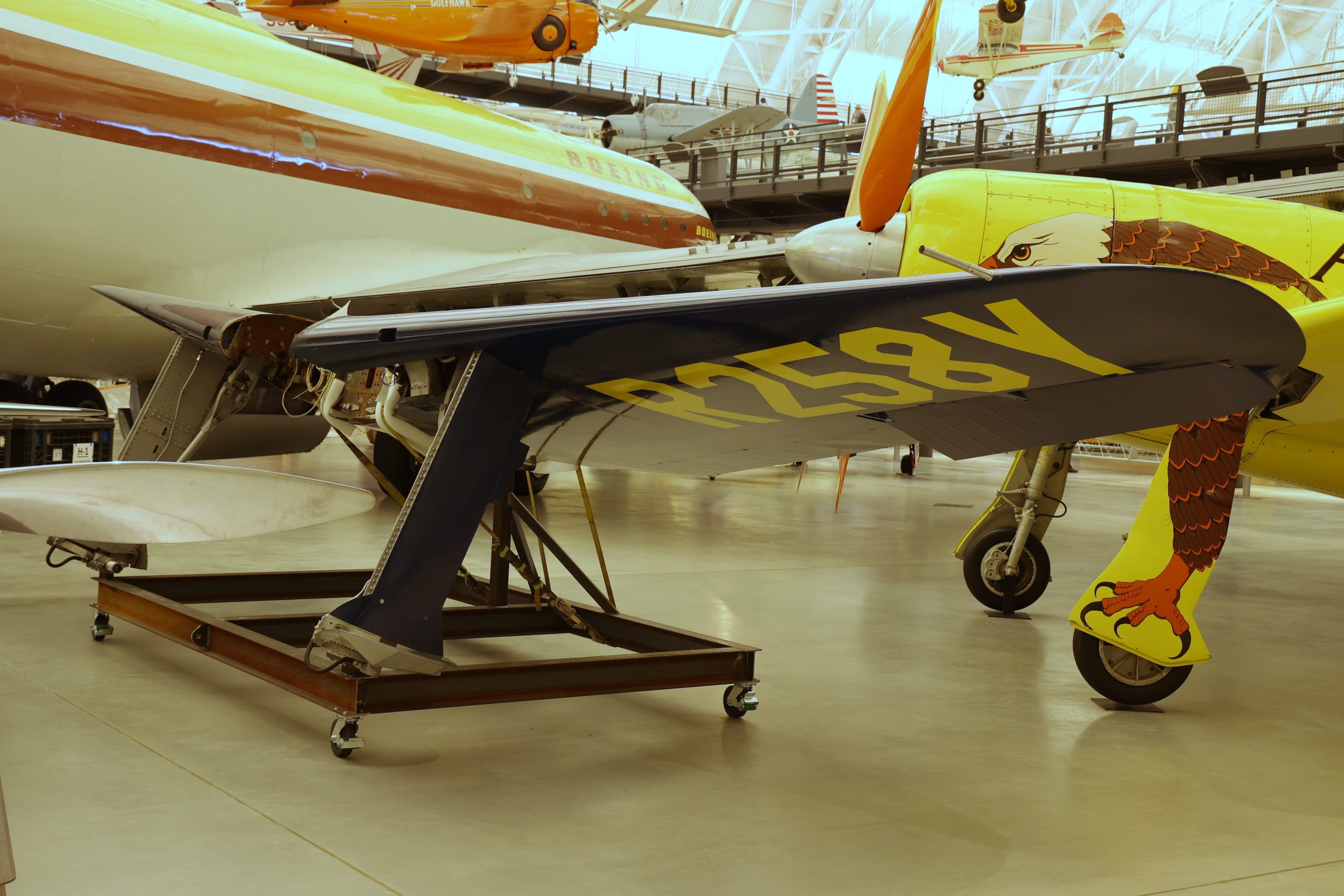 Over the next forty-three years, the Hughes H-1 Racer remained on display on the National Mall, while the short pair of wings the Racer wore on its speed run that ended in a California beet field, which Hughes had kept for all these years, were placed in storage at the museum’s Silver Hill Facility in Suitland. The museum changed a few of the galleries the Racer was in, but the one that most visitors would recall seeing on display in was the museum’s Golden Age of Flight gallery, where it sat alongside polar explorer Lincoln Ellsworth’s Northrop Gamma Polar Star, Steve Wittman’s Wittman Special 20 Buster midget racer, the Curtiss Robin Ole Miss flown by brothers Fred and Al Key on their 1935 flight endurance record, and a Beech Staggerwing once owned by Edwin E. Aldrin Jr., father of future Apollo 11 astronaut Buzz Aldrin.