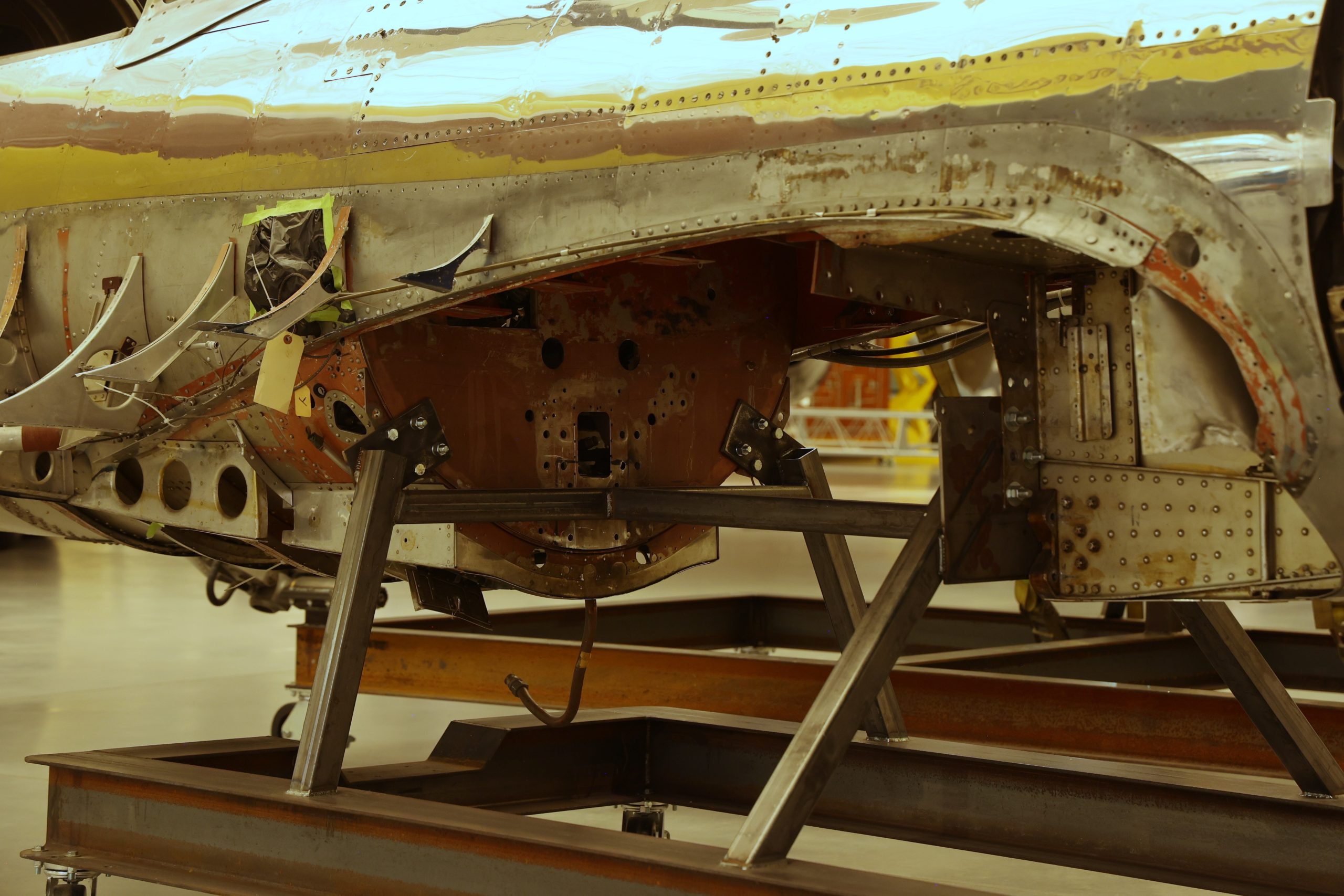 Originally, the Hughes company planned to ship the airplane intact on a cargo ship that would transit the Panama Canal and land on the East Coast. But when it became evident that the Hughes H-1 Racer had to be disassembled to enter the museum building before being reassembled inside the museum’s gallery spaces, Howard Hughes himself made a call from his latest penthouse, telling how the aircraft should be dismantled and put back together. Furthermore, Hughes insisted on refurbishing the aircraft to appear as it did when he landed it at Newark Airport following his transcontinental record set back in 1937.
