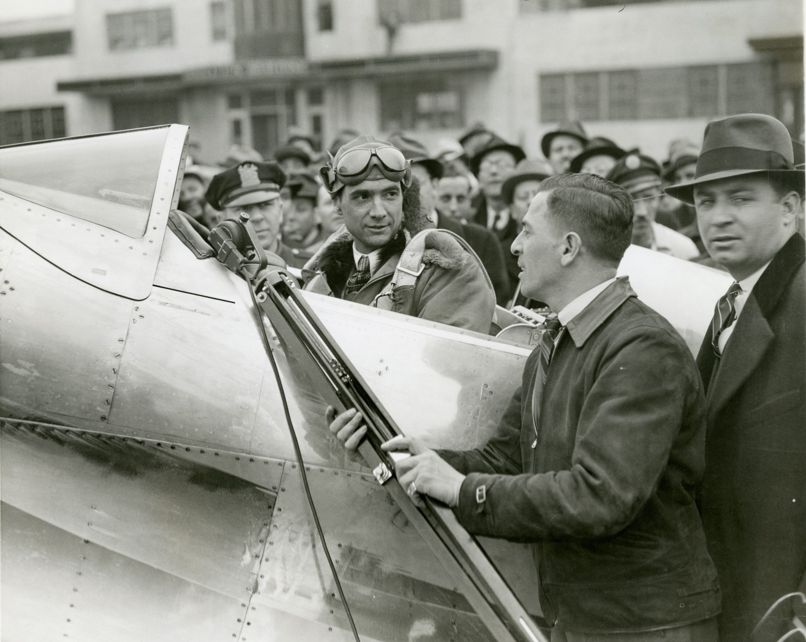 To ensure that Hughes stuck to the prescribed altitude, two pilots would fly above Hughes. These two were none other than Amelia Earhart and movie pilot Paul Mantz. Nine months earlier, Earhart made history by becoming the first pilot to fly solo from Hawaii to California in a new Lockheed Vega 5C, NR965Y, and Mantz had gone to Hawaii to help prepare Earhart for that flight. Now they would fly together as the two official aerial observers for Hughes’ record-setting flight.