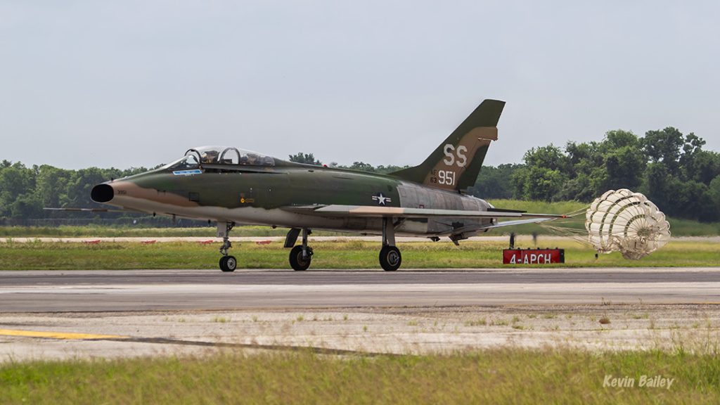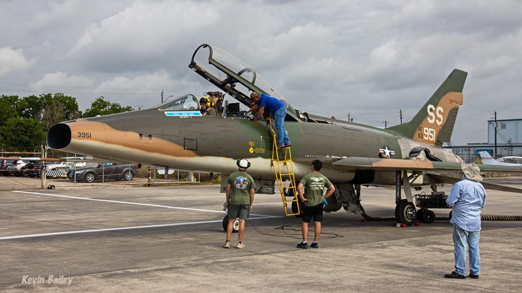 Following its return to the air, the F-100F joined a Memorial Day commemoration at the Lone Star Flight Museum, flying in the pattern. The static display included the AD-4NA Skyraider, a Polish-built MiG-17bis, the Collings Foundation’s F-4D Phantom II, T-33 Shooting Star, TA-4F Skyhawk, and Jerod Flohr’s Skyhawk 518. According to museum personnel, the Super Sabre performed flawlessly throughout the flight, with no major issues reported.
