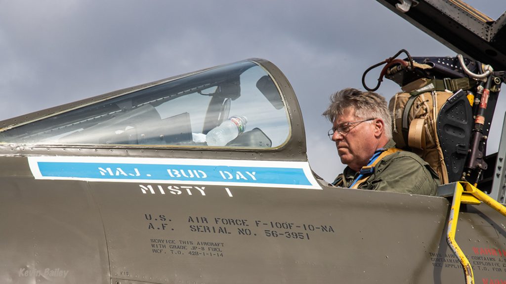 Today, the jet honors one of the Air Force’s most revered figures—Colonel George “Bud” Day. The aircraft is painted in the markings of Day’s original F-100, “MISTY 1.” Colonel Day is recognized as the most decorated U.S. Air Force officer and the most decorated American serviceman since General Douglas MacArthur. He was a Medal of Honor and Air Force Cross recipient.
