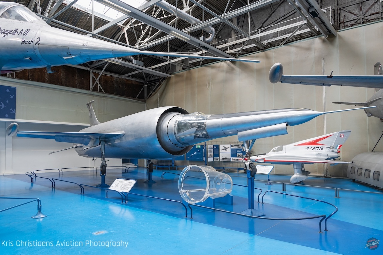The Hall des Prototypes is one of the museum’s most technically absorbing spaces. Where other galleries trace the arc of aviation history through conflict and chronology, this hall is devoted to something different: experimentation, ingenuity, and the engineering ambitions that never made it to the production line. It is a testament to aeronautical risk-taking, where designers pushed hard against the limits of speed, aerodynamics, and propulsion. The aircraft gathered here were built in tiny numbers, often as single airframes, serving as proof-of-concept machines rather than operational vehicles. Their value lay not in what they became, but in what they demonstrated. The hall makes clear that aerospace progress is rarely linear. Failed or abandoned programs still feed into the broader pool of aerodynamic knowledge, propulsion research, and systems understanding, and many of the ideas tested here quietly shaped the aircraft that followed. Visitors can trace the evolution of wing geometries, fuselage forms, air intake designs, and propulsion arrangements across decades of experimentation. Many of the machines on display carry the unmistakable imprint of Cold War priorities: supersonic performance, high-altitude interception, and missile integration, while others explored more unconventional territory, including vertical and short takeoff capability, ramjet propulsion, or structural configurations that defied convention. Among the aircraft on show are the Nord 1500 Griffon II, the SNCASO SO.9000 Trident, the Dassault Mirage III prototype, the Leduc 022, and the Breguet 941, each representing a distinct moment of calculated aeronautical ambition.