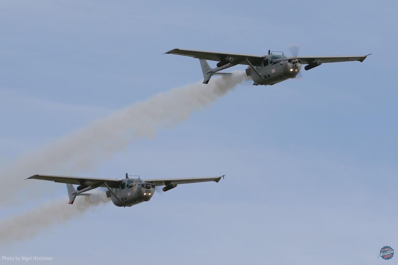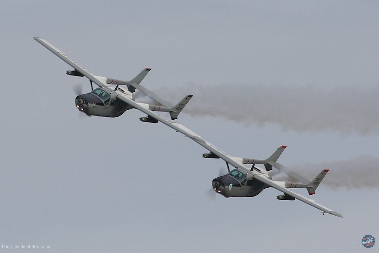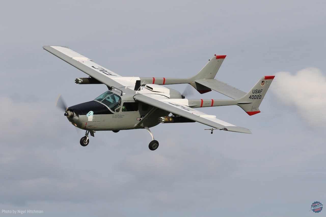 The two Spanish Cessna O-2s provided an interesting change. EC-IPL and EC-MYM are operated by Fundación Aeronáutica Antonio Quintana, based at Cuatro Vientos near Madrid. These are ex-Portuguese AF Cessna FTB.337Gs painted to represent USAF Cessna O-2s used as forward air controllers in the Vietnam War.