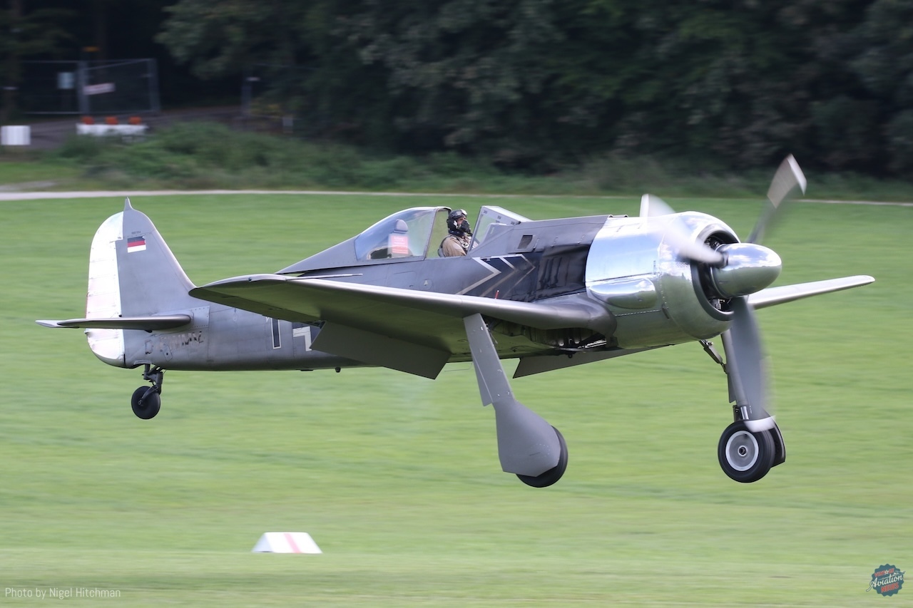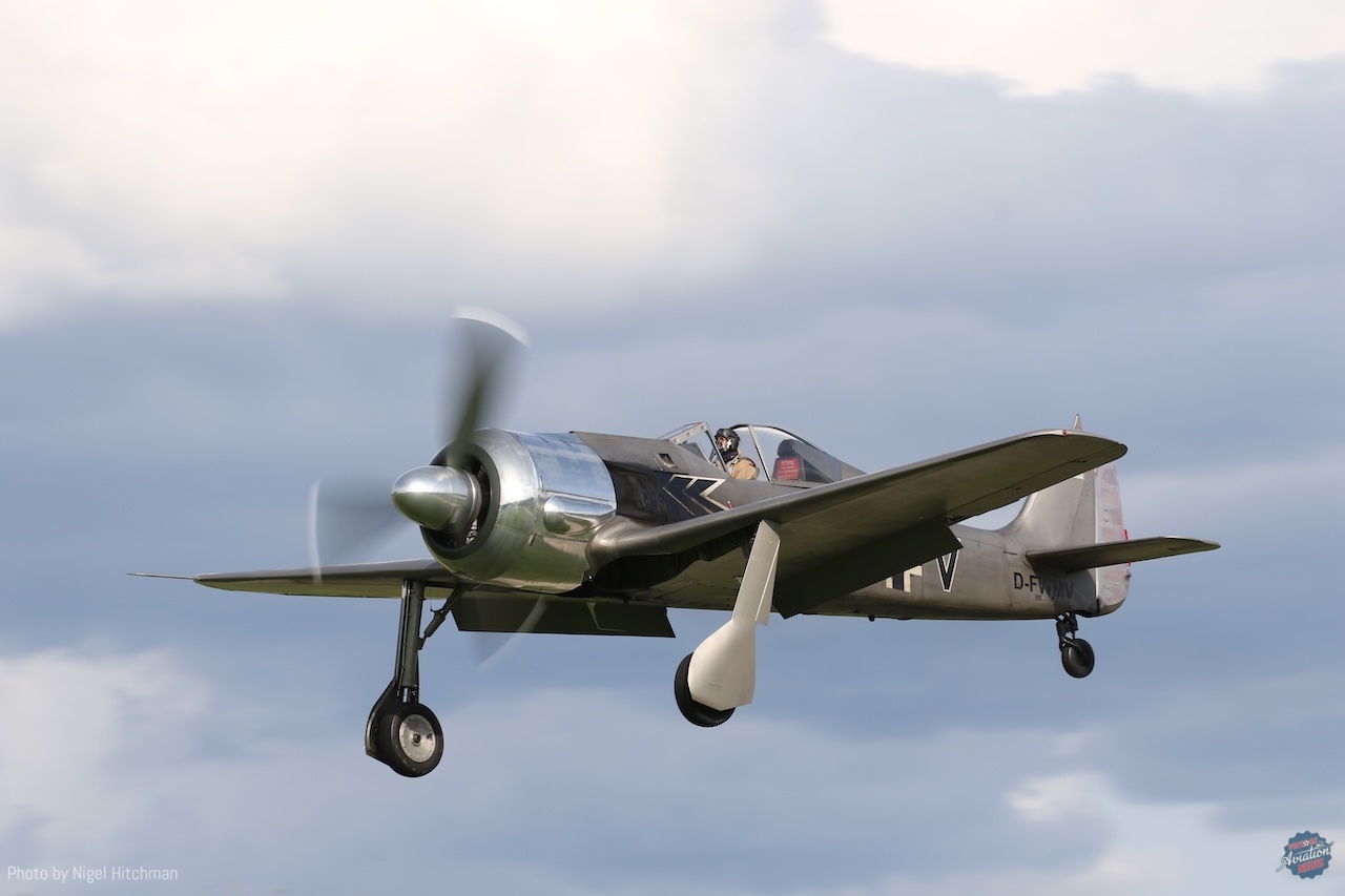 The Flug Werk FW190 D-FWMV was another hit, flown by Klaus Plasa, who had probably flown more FW190s than anyone else. Unfortunately, it had landing gear problems on Saturday, and so we only had one gear down pass before landing, and on Sunday, it just flew back to base at Braunschweig with the gear locked down. This was the FW190 that appeared at Duxford around 2007, when owned by American Tom Blair and registered G-FWAB. Having been built with very poor workmanship in some areas, particularly the wing, it was not permitted to fly. It was sold and ended up having extensive work done on it at Meier Motors and then further work on the wing at Braunshweig. It’s been flying since 2011, but only made occasional airshow appearances, and this was its first visit to Hahnweide.