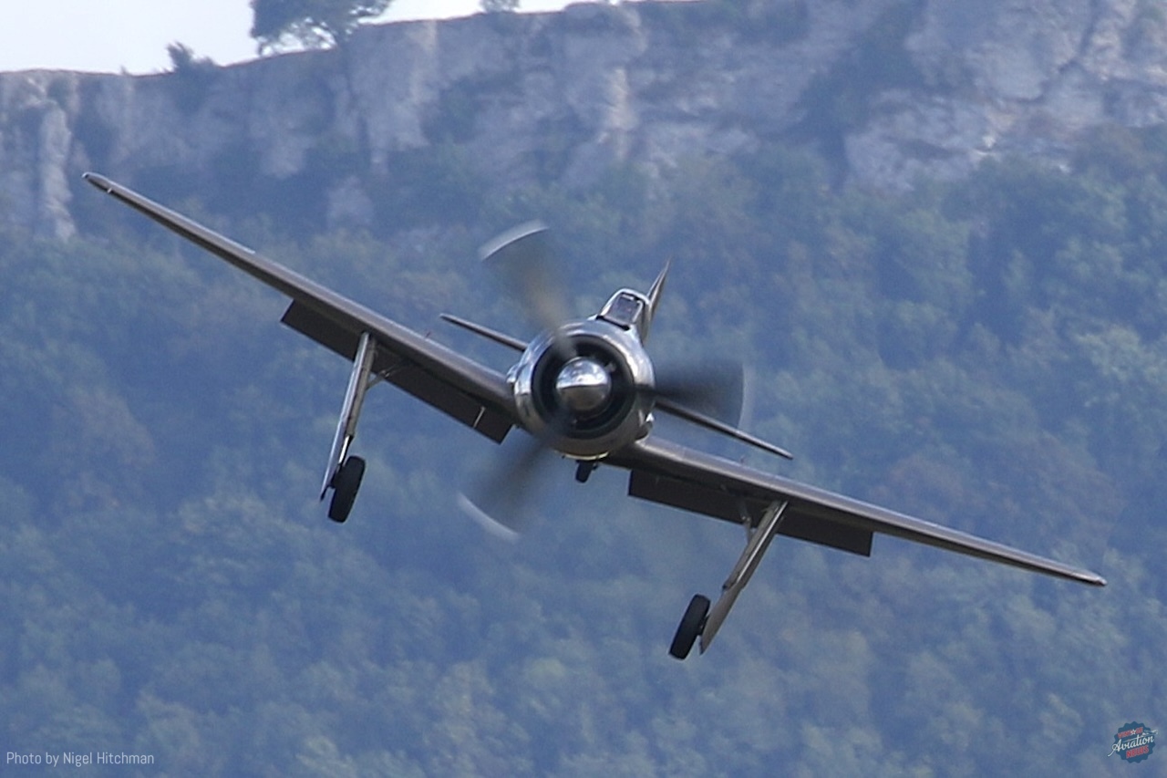 Georg Raab’s Flying Legend brought their Vought F4U-5NL Corsair D-FCOR, P-51D Mustang “Francis Dell” OO-NZW and Spitfire IX MH415 OO-IXB. They arrived together in a nice formation but displayed separately.