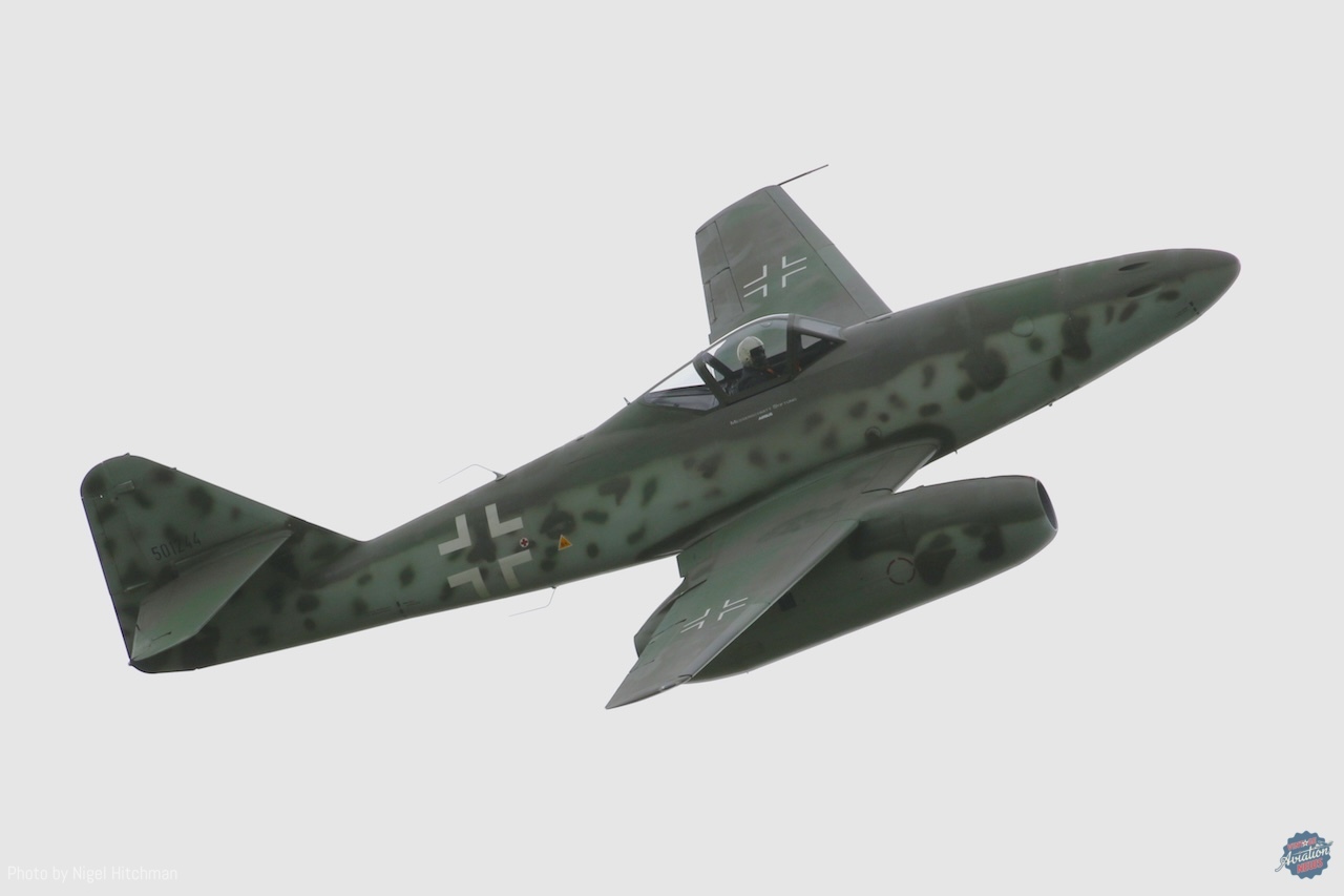 Flying from elsewhere were the Messerschmitt foundation Me262 D-IMTT and Hispano HA.200D Saeta D-IWMS, which gave a few excellent formation passes before splitting for individual displays. The Me262 is, of course, one of the three flying replicas built as copies of an original started in Texas and completed in Seattle, this one first flying in 2005 there and then in Germany in 2006. The Hispano Saeta was a Wülfli Messerschmitt design, first flying in 1955, and in service with the Spanish Air Force until the early 80s. This example was obtained by the Messerschmitt foundation in 1995 and taken to Manching for some restoration work and repainting, flying again in 1998.
