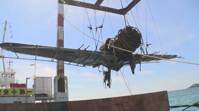 Recovered from a depth of approximately three meters and located just a few hundred meters offshore near Akune City, the aircraft emerged from the seabed at around 2:30 p.m., watched by a gathered crowd of historians, volunteers, and local residents. Despite its prolonged exposure to the marine environment, the aircraft’s overall form remained strikingly intact, with wings and structural features still clearly identifiable.