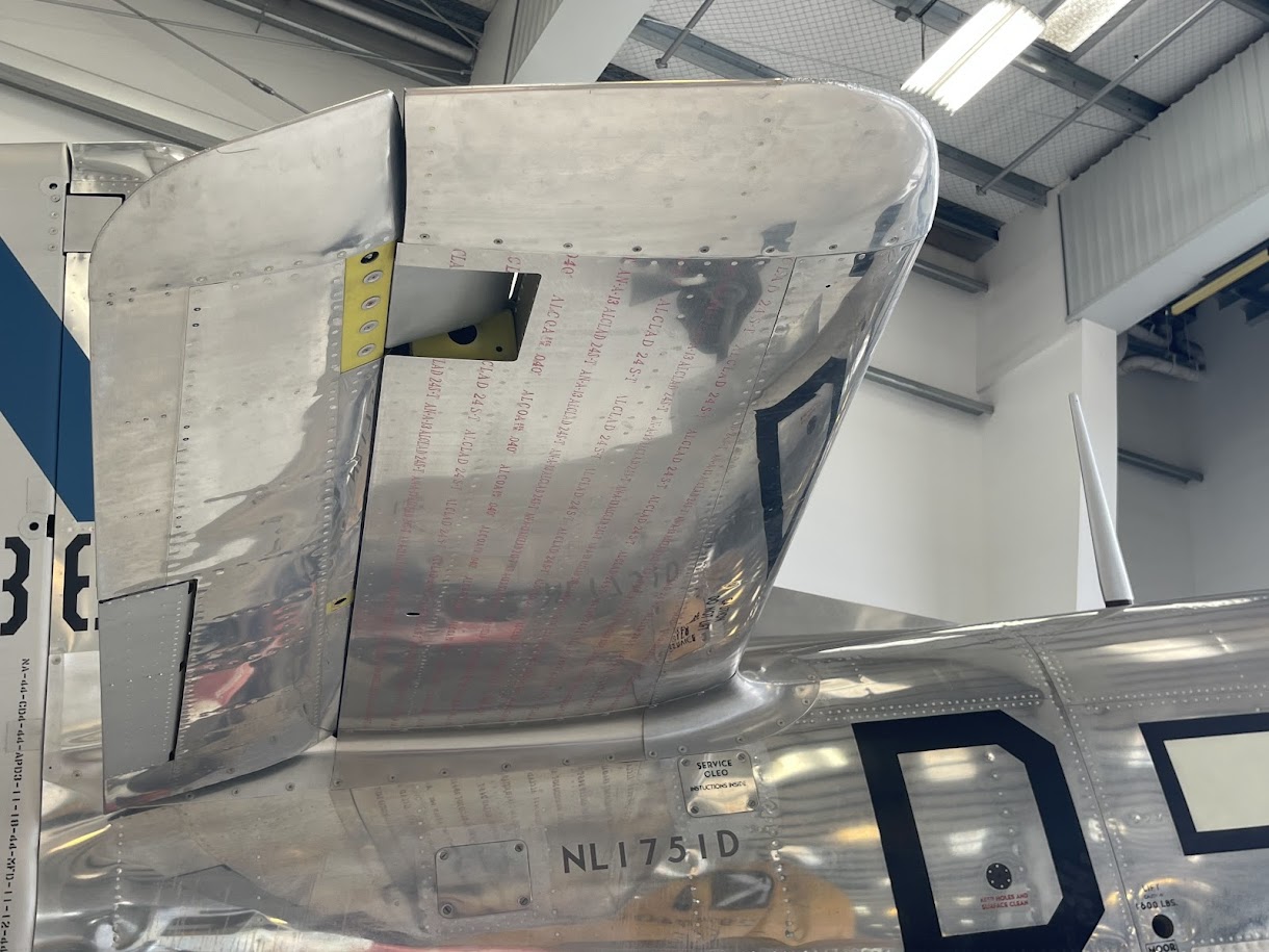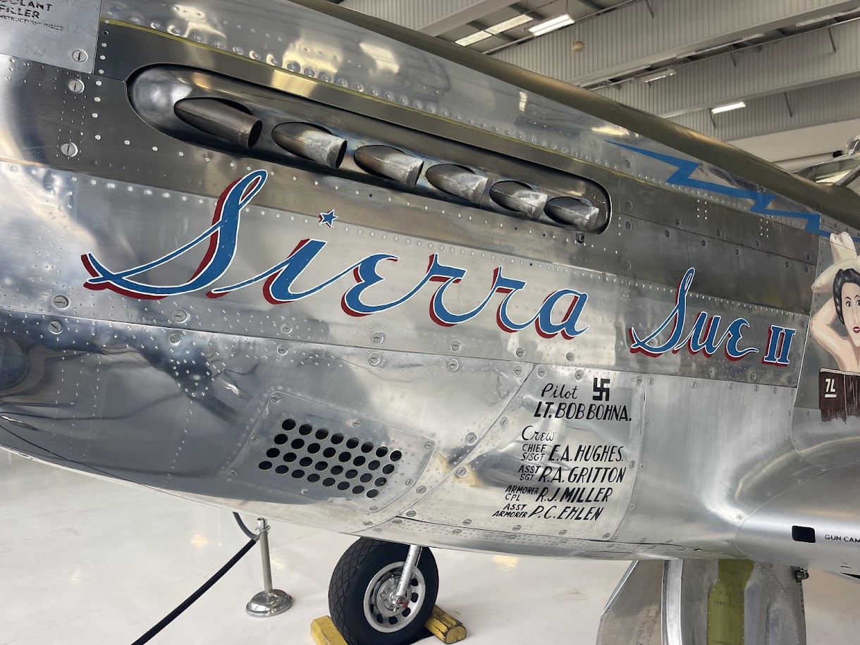 In July 2011, Christgau sold Sierra Sue II to Paul Ehlen of Hamilton, Montana, who shipped 44-63675 to AirCorps Aviation of Bemidji, Minnesota, for a completion restoration. For more than three years, AirCorps’ staff has been exhaustively to the nth degree, back to its original factory configuration. During the restoration, AirCorps Aviation determined that the only parts on the airplane that were not originally installed at the North American Aviation plant were the ailerons, engine mount, and flaps. The restoration would see the reinstallation of original WWII flight equipment, from the fuselage fuel tank and armor plating to demilitarized armament and original radio sets. With the help of the family of Bob Bohna, who had earned the Distinguished Flying Cross (DFC) and Air Medal during the war, became a commercial pilot and later a car dealer in Sonoma, California before passing away in 2010, the team at AirCorps Aviation learned more details about the paint scheme of Sierra Sue II, and managed to find the namesake of Sierra Sue II, Suzanne “Suzy” (Lang) Holcomb, whose identity was previously unknown to the restorers and to aviation historians. On September 17, 2014, 44-63675 made its first post-restoration flight. In May 2015, Sierra Sue II was acquired by the Wings of the North Air Museum in Eden Prairie, Minnesota, and during the 2015 EAA Airventure airshow at Oshkosh, Wisconsin, Sierra Sue II earned the 2015 Reserve Grand Champion WWII Award and received a Golden Wrench Award for AirCorps Aviation, and in 2018, Sierra Sue II led the flyover of Super Bowl LII held at U.S. Bank Stadium in Minneapolis. At the controls was veteran warbird pilot Steve Hinton, accompanied by two A-10 Thunderbolt IIs and one F-16 Fighting Falcon (see this article HERE).
