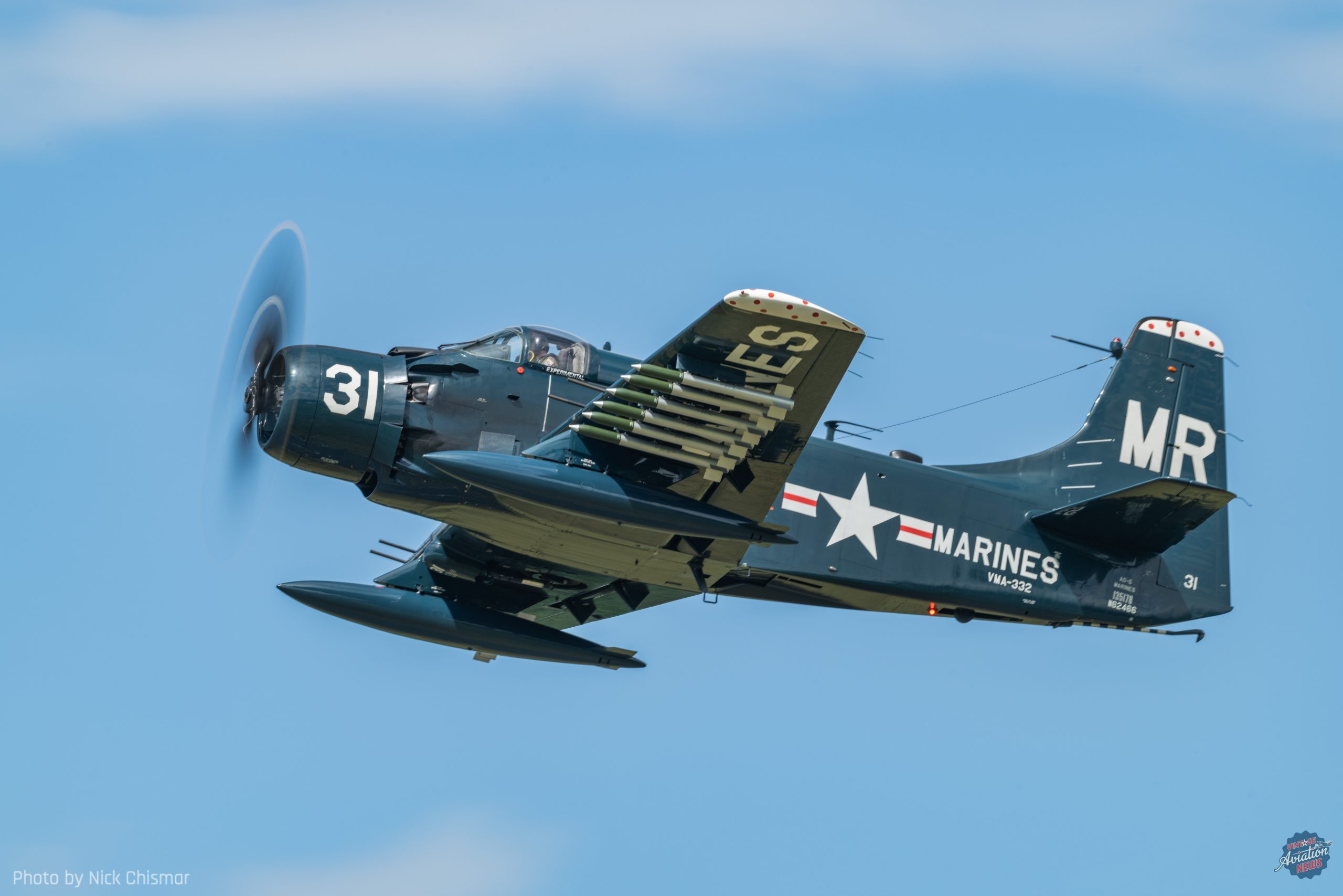 With a star-studded lineup of aircraft, this year’s airshow promised to be one for the books. Although two previously announced aircraft—the Warbird Factory’s TBM-3E Avenger “Ida Red” and the Military Aviation Museum’s P-40E Warhawk—were unable to attend, they were swiftly replaced by Vintage Flying Machines’ AD-5 Skyraider and the Military Aviation Museum’s Flug Werk FW-190A, both of which dazzled the crowds.