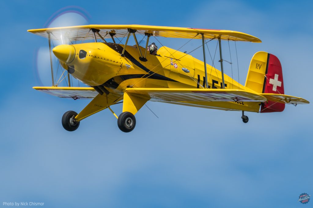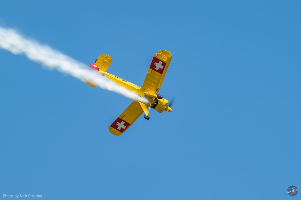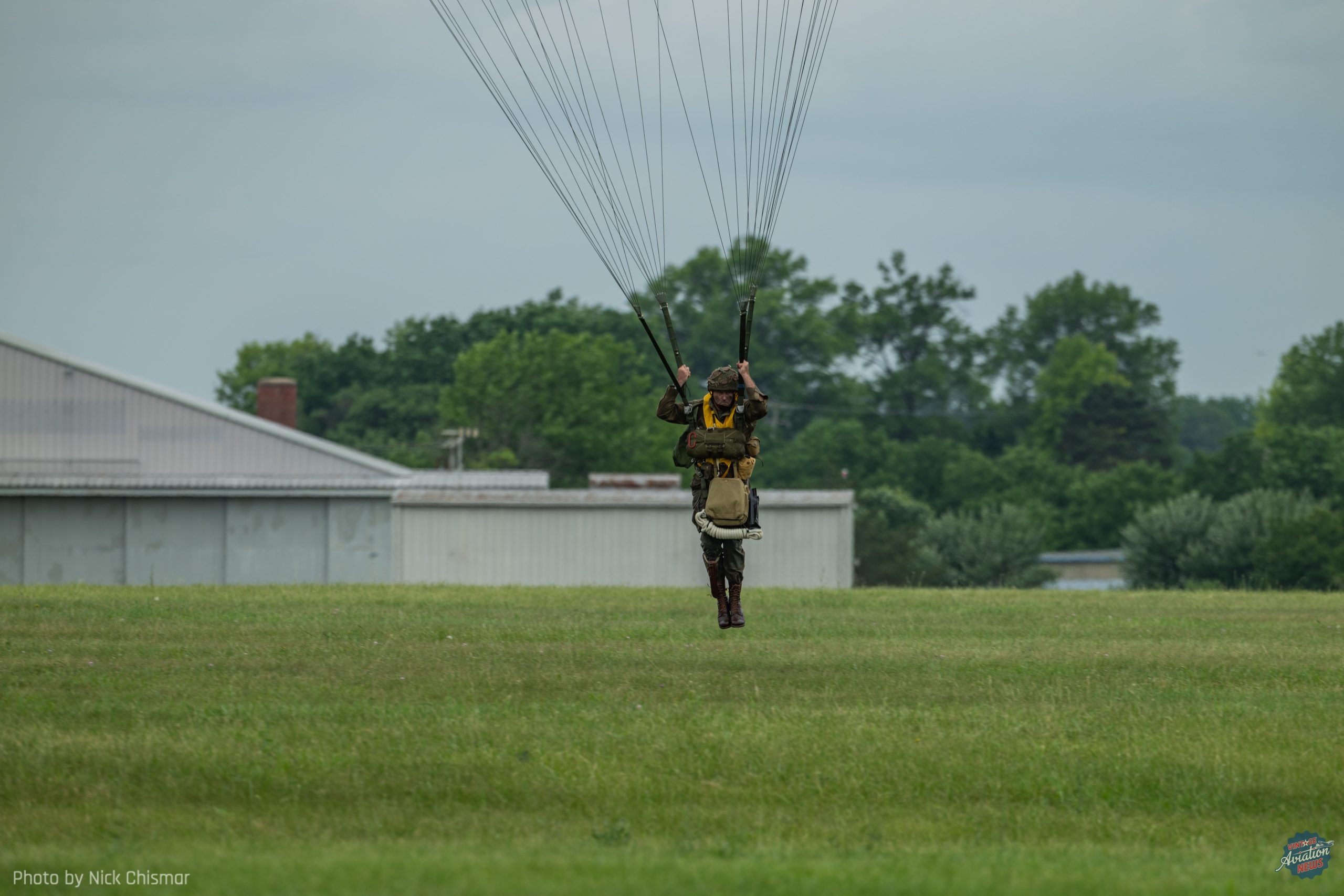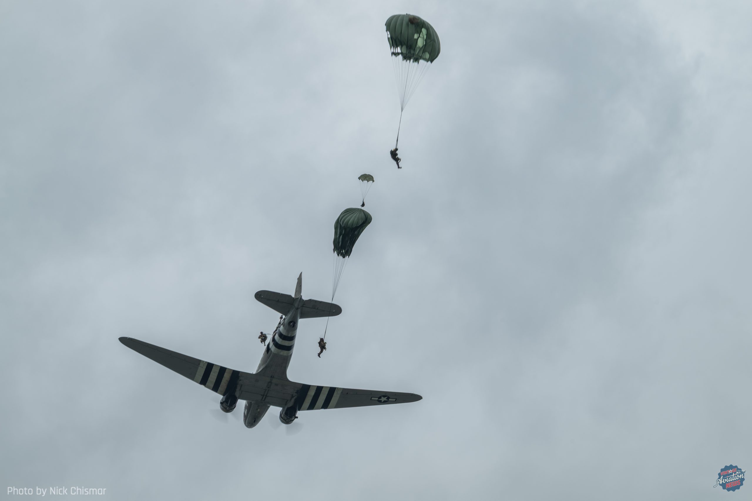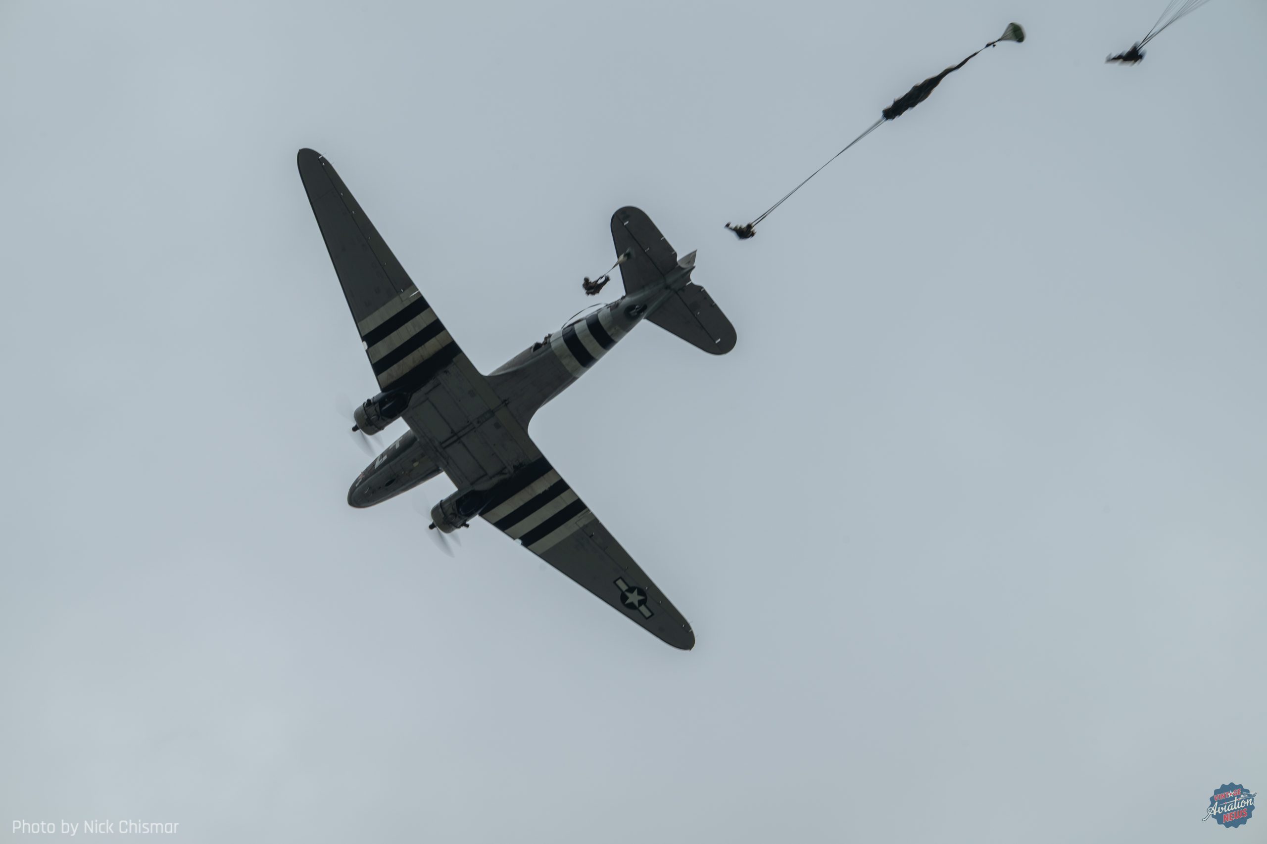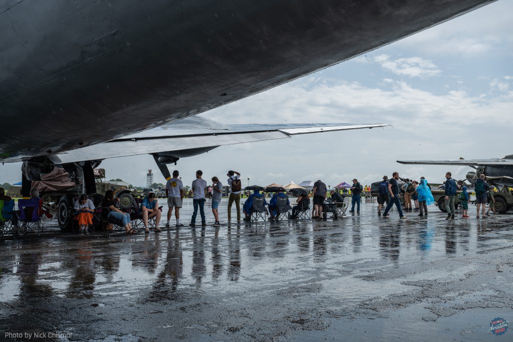 As noon approached and ride flights cycled through, the official airshow began. Placid Lassie and Wild Cat kicked off the program with two paratroop drops from the WWII Airborne Demonstration Team. After their check pass, the C-47s made two precise jumps over the field before each returned for a photo pass. Following a final flight from Panchito, Friday’s flying schedule was cut short as scattered thunderstorms rolled in, bringing steady rain for the rest of the afternoon.