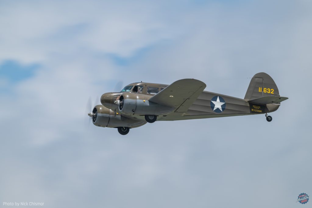 Fortunately, the skies cleared just in time for the evening activities. Reenactors, guests, and big-band tunes filled the main hangar for the first dance, while ride flights resumed. The break in the weather also allowed the first portion of the WWII Weekend Photo Experience to take place—a golden-hour walk along the flight line. Photographers made their way down the ramp, capturing moody sunset shots of the Skyraider, Airbase Georgia’s FG-1D Corsair, and the Helldiver. But the highlight was Doc, silhouetted against the setting sun. Before the night was through, an impromptu airshow broke out as an Air National Guard C-130 performed touch-and-go landings.