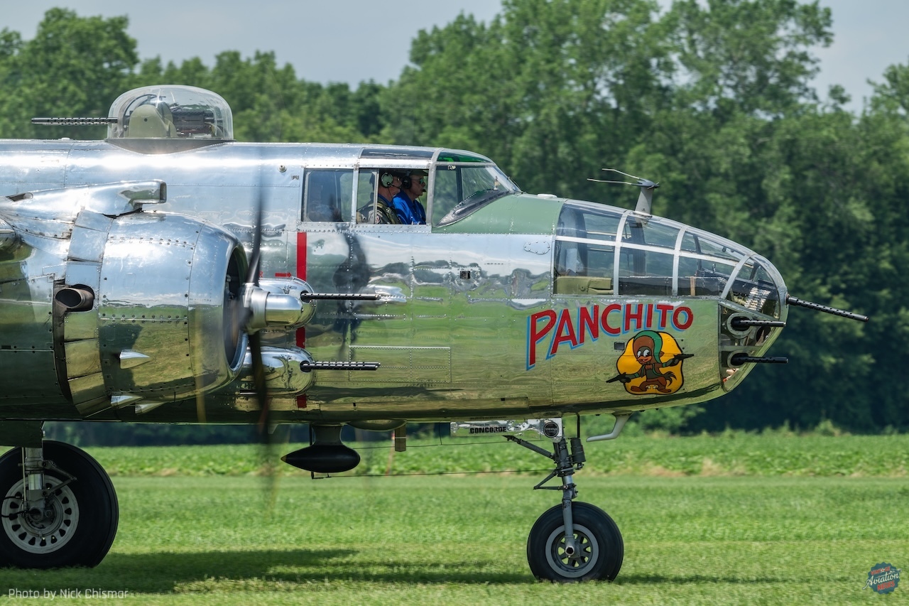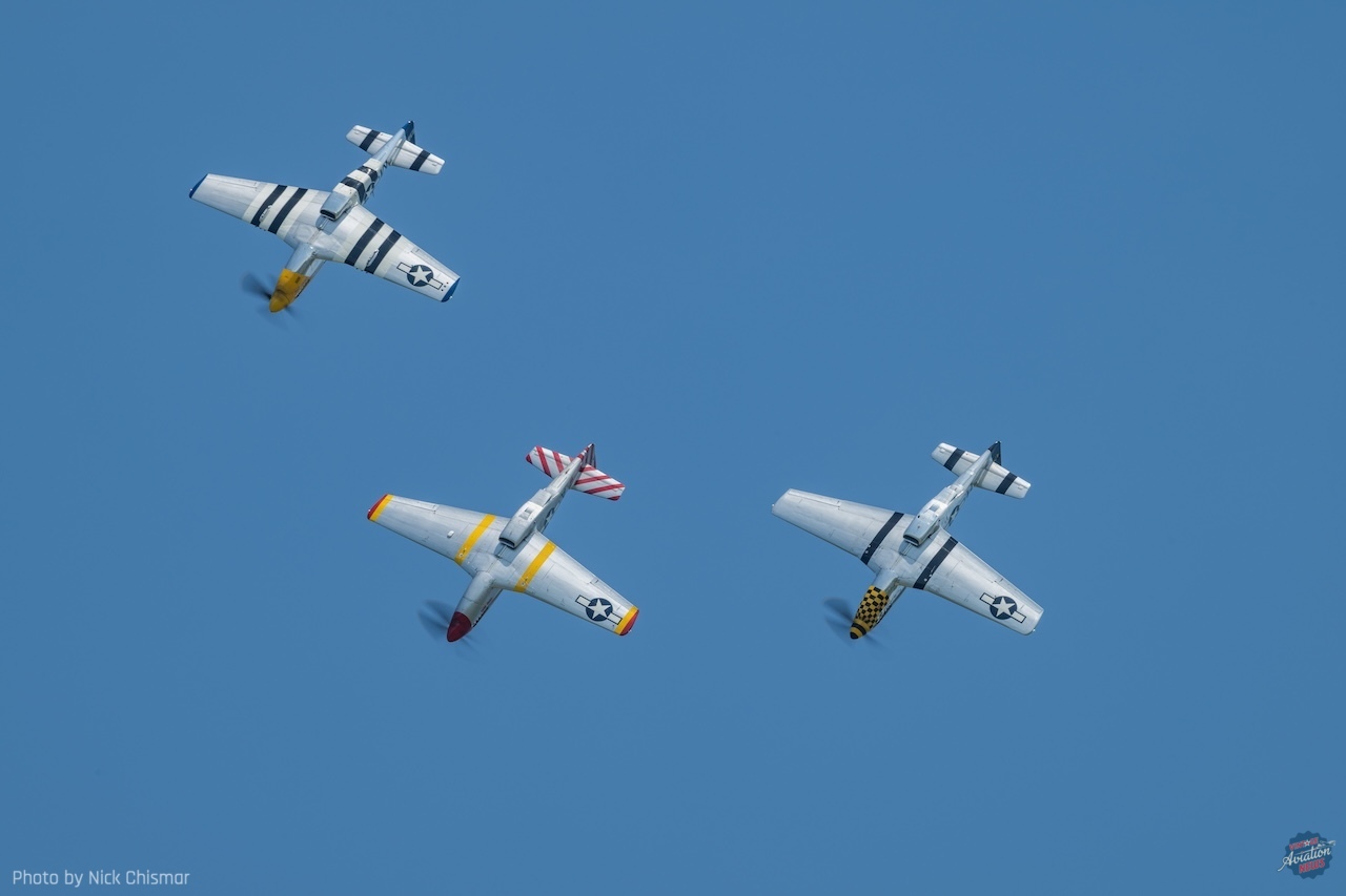 Two B-25 Mitchells, “Champagne Gal” and “Panchito,” also took to the air, demonstrating the medium bomber’s rugged performance and “hotrod-like” handling through a series of dynamic passes.