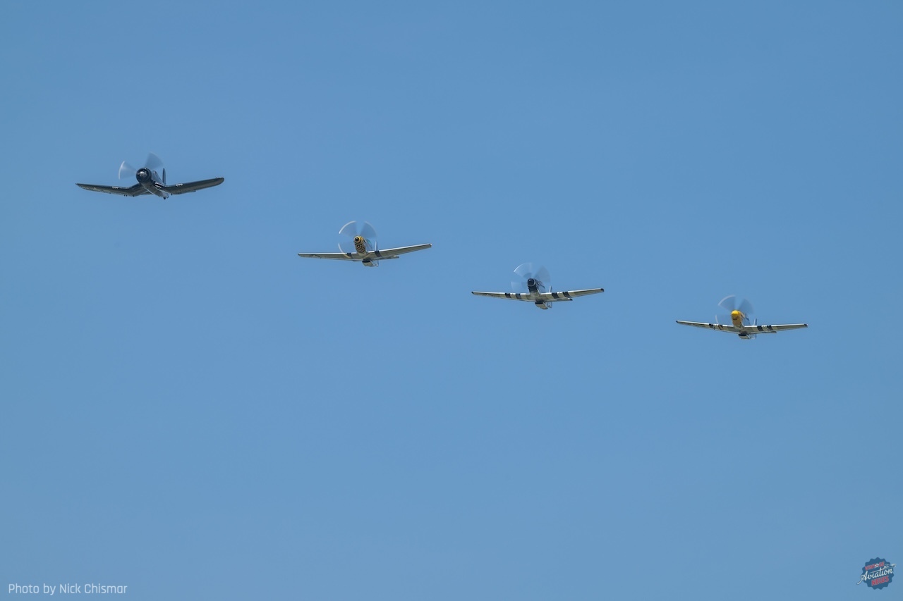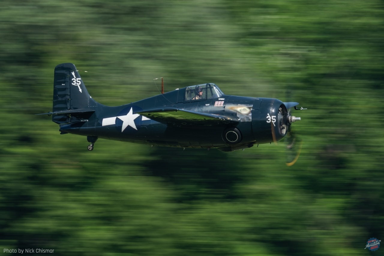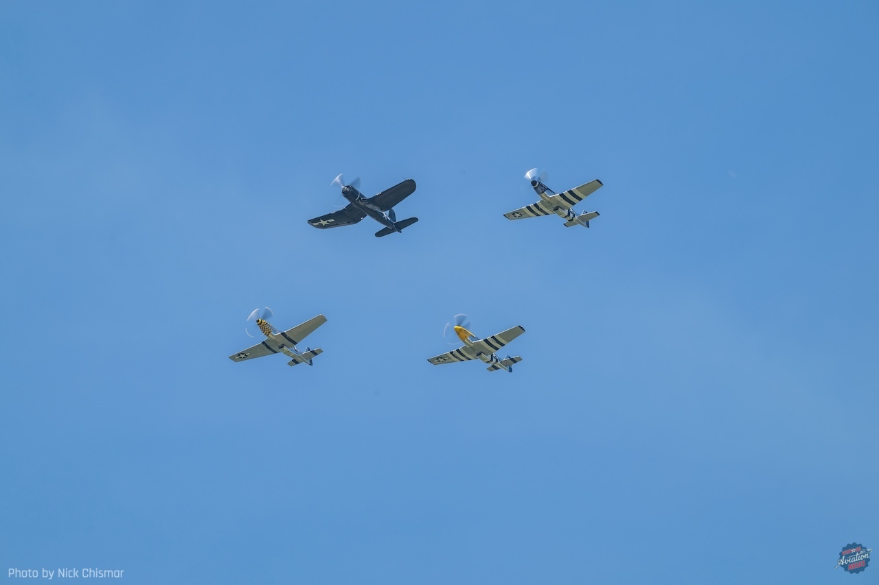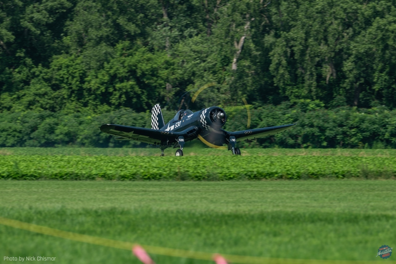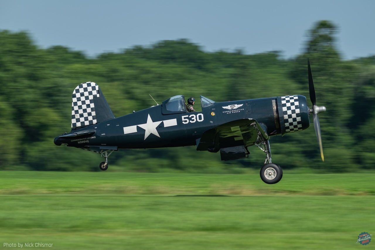 As Thom concluded his performance with a series of photo passes, CAF Airbase Georgia’s FG-1D Corsair began its takeoff roll. However, before the Corsair’s display, Trevor Rafferty took off in his Pitts Model 12. Unfortunately, a technical issue appeared during takeoff, prompting Trevor to safely return to the pattern and land shortly after. Although the crowd missed out on his trademark aerobatics, safety remained the top priority. With Trevor safely back on the ground, CAF Airbase Georgia’s Corsair came screaming in from the show right. The size, sound, and presence of the aircraft never fail to impress. A crowd favorite is always the “dirty pass” or “carrier approach,” in which the gear, flaps, and tailhook are deployed for a slow, dramatic flyby.