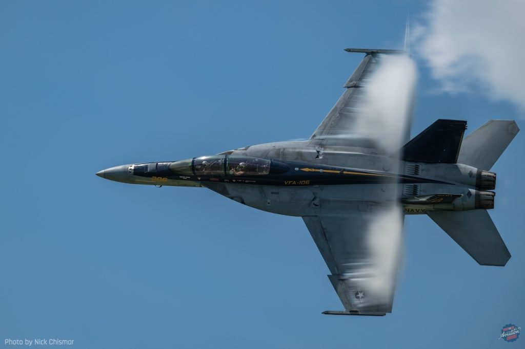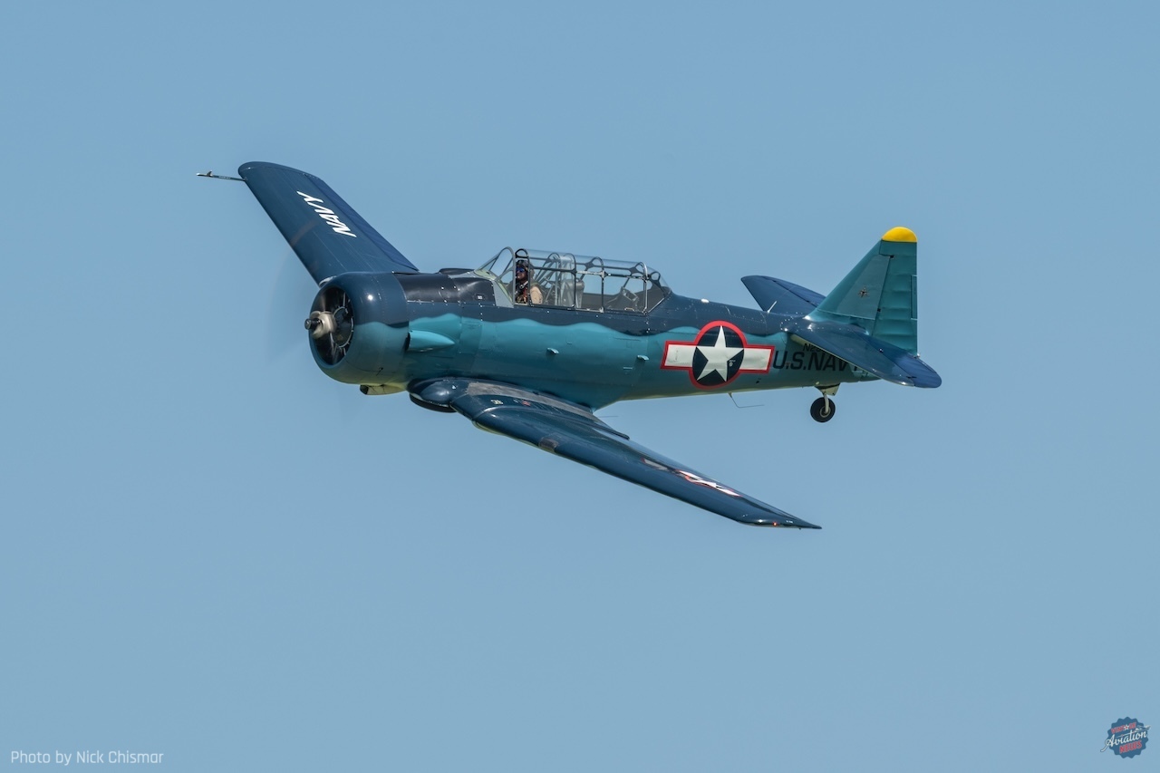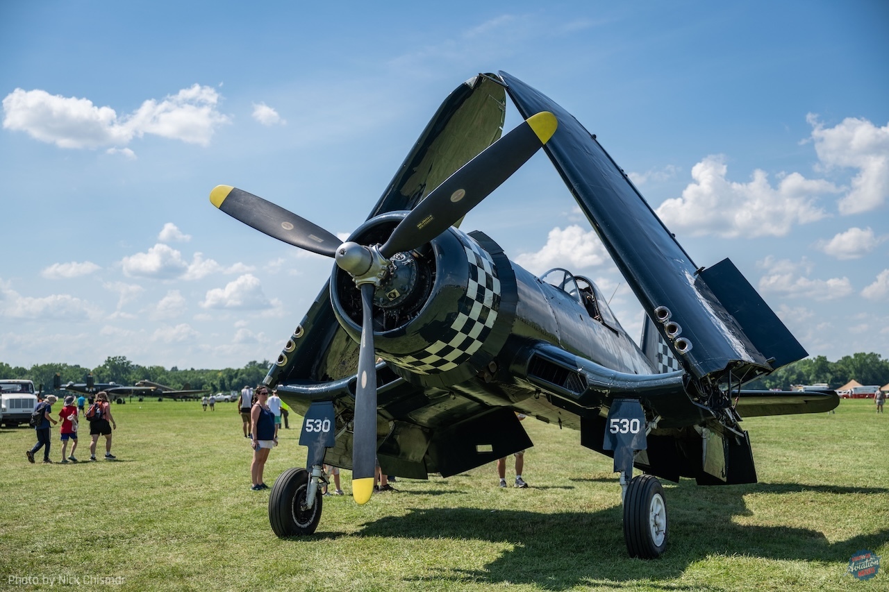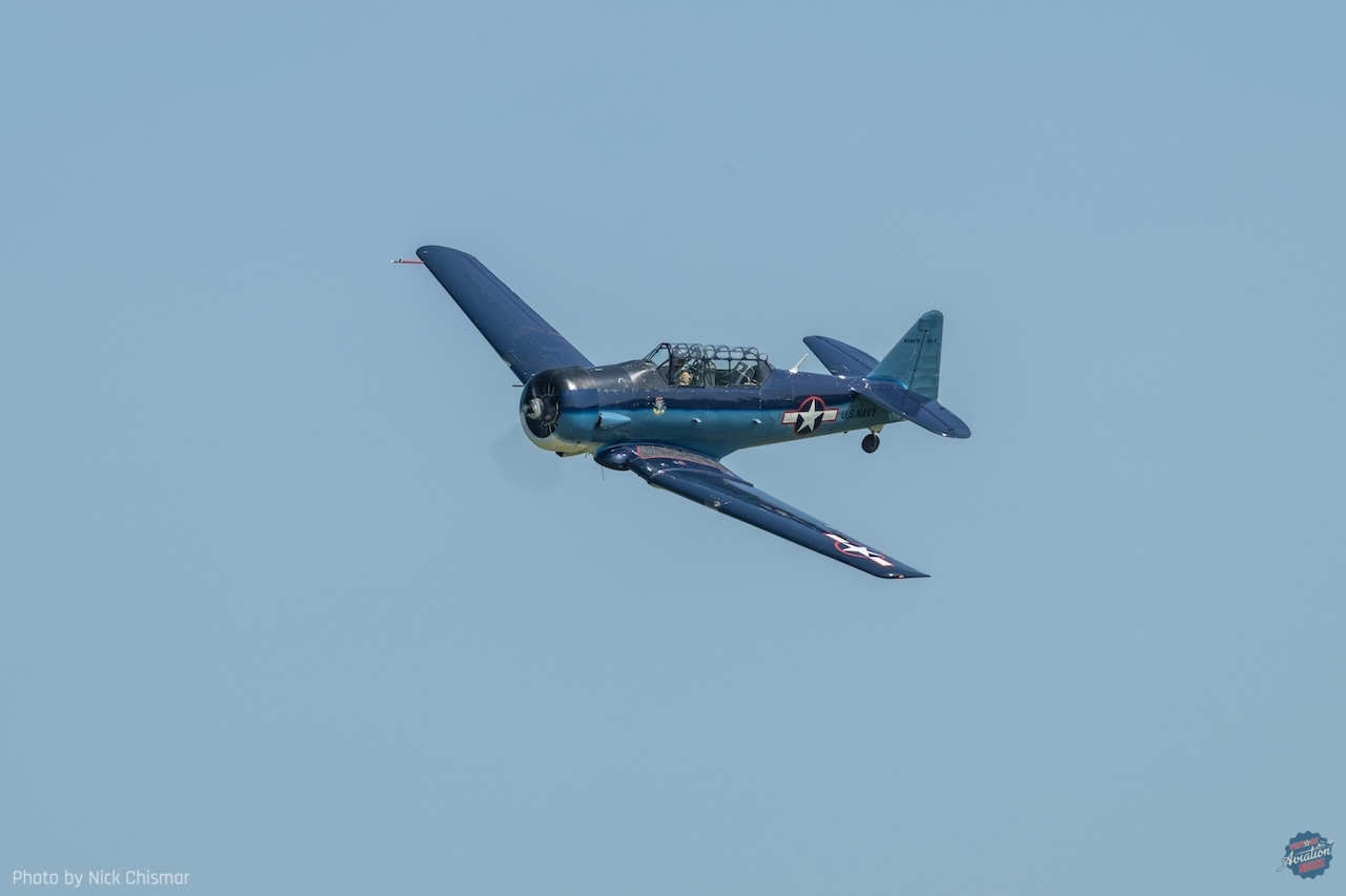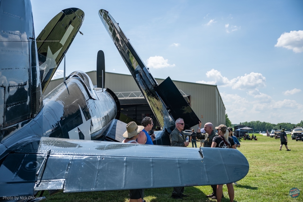 As Thom concluded his performance with a series of photo passes, CAF Airbase Georgia’s FG-1D Corsair began its takeoff roll. However, before the Corsair’s display, Trevor Rafferty took off in his Pitts Model 12. Unfortunately, a technical issue appeared during takeoff, prompting Trevor to safely return to the pattern and land shortly after. Although the crowd missed out on his trademark aerobatics, safety remained the top priority. With Trevor safely back on the ground, CAF Airbase Georgia’s Corsair came screaming in from the show right. The size, sound, and presence of the aircraft never fail to impress. A crowd favorite is always the “dirty pass” or “carrier approach,” in which the gear, flaps, and tailhook are deployed for a slow, dramatic flyby.