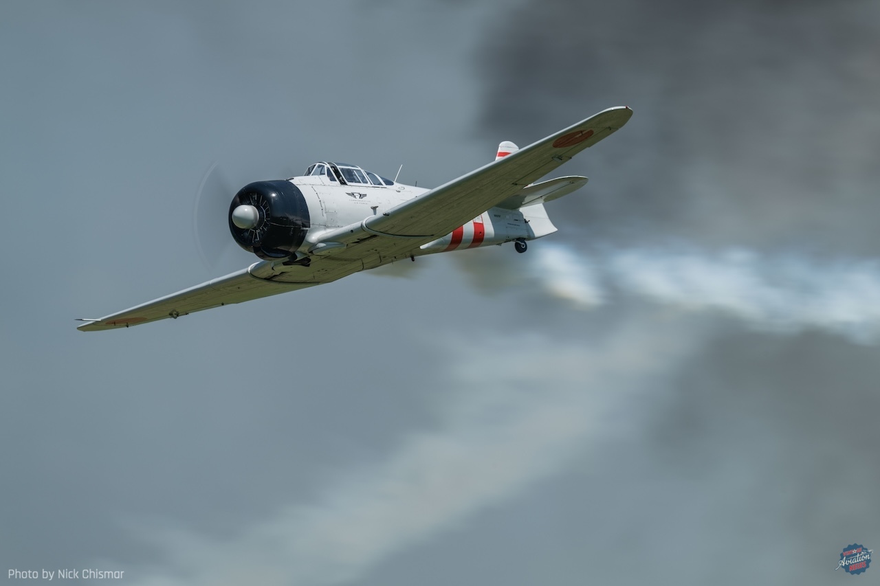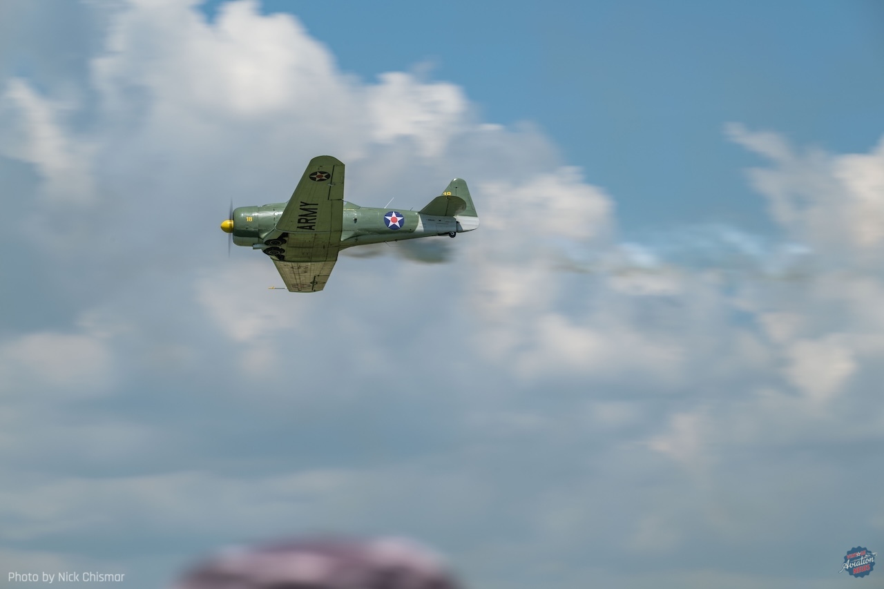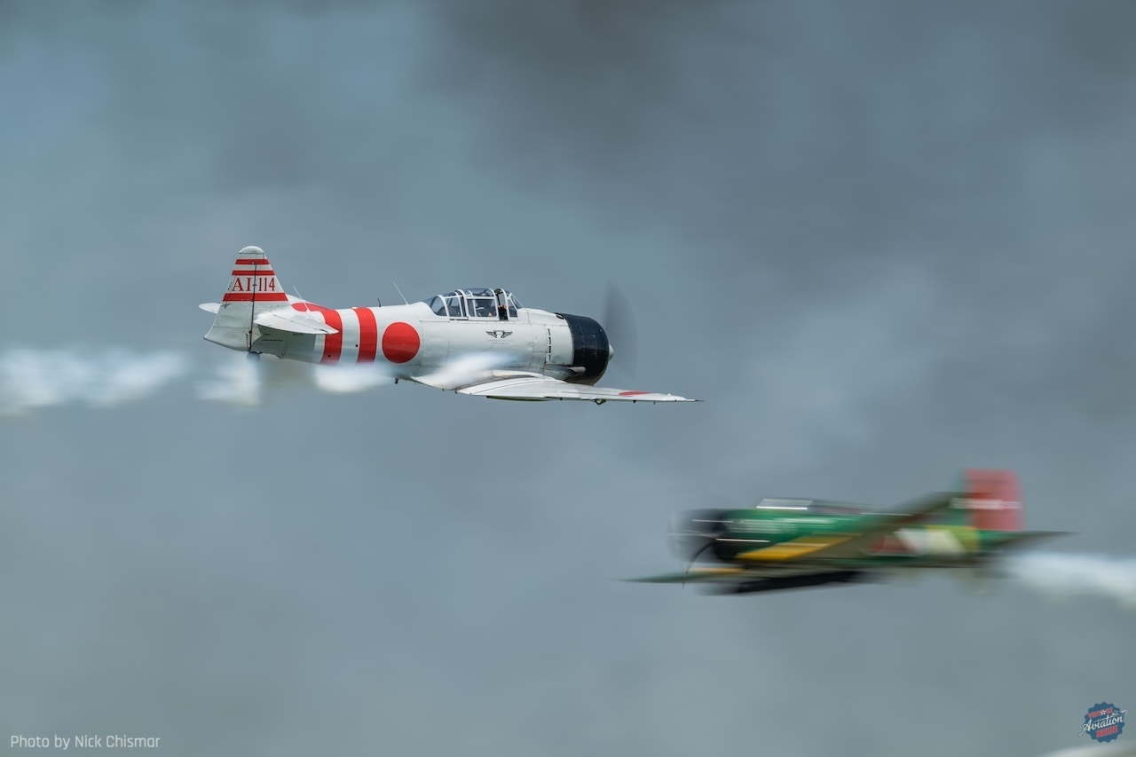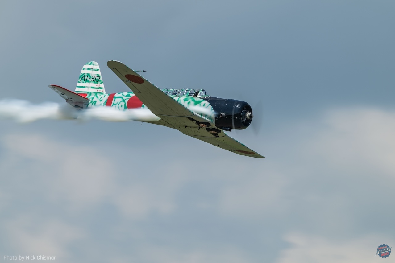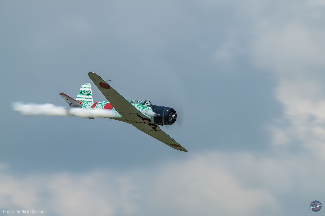 A variety of WWII-era trainers also flew throughout the day, including several T-6s, a BT-13, and a historically significant aircraft that was on the ground in Honolulu during the attack on Pearl Harbor. It was then that air raid sirens sounded, and aircraft began to approach from behind the crowd. Breaking formation in all directions, the CAF’s Tora! Tora! Tora! reenactment of the Pearl Harbor attack was underway. Featuring smoke, pyrotechnics, and carefully choreographed flight paths, the display captivated the audience. For many, it was the first time witnessing such a large number of aircraft in a single, coordinated reenactment. After each performer made a final photo pass, they regrouped for a final spectacle—the iconic “Wall of Fire.”