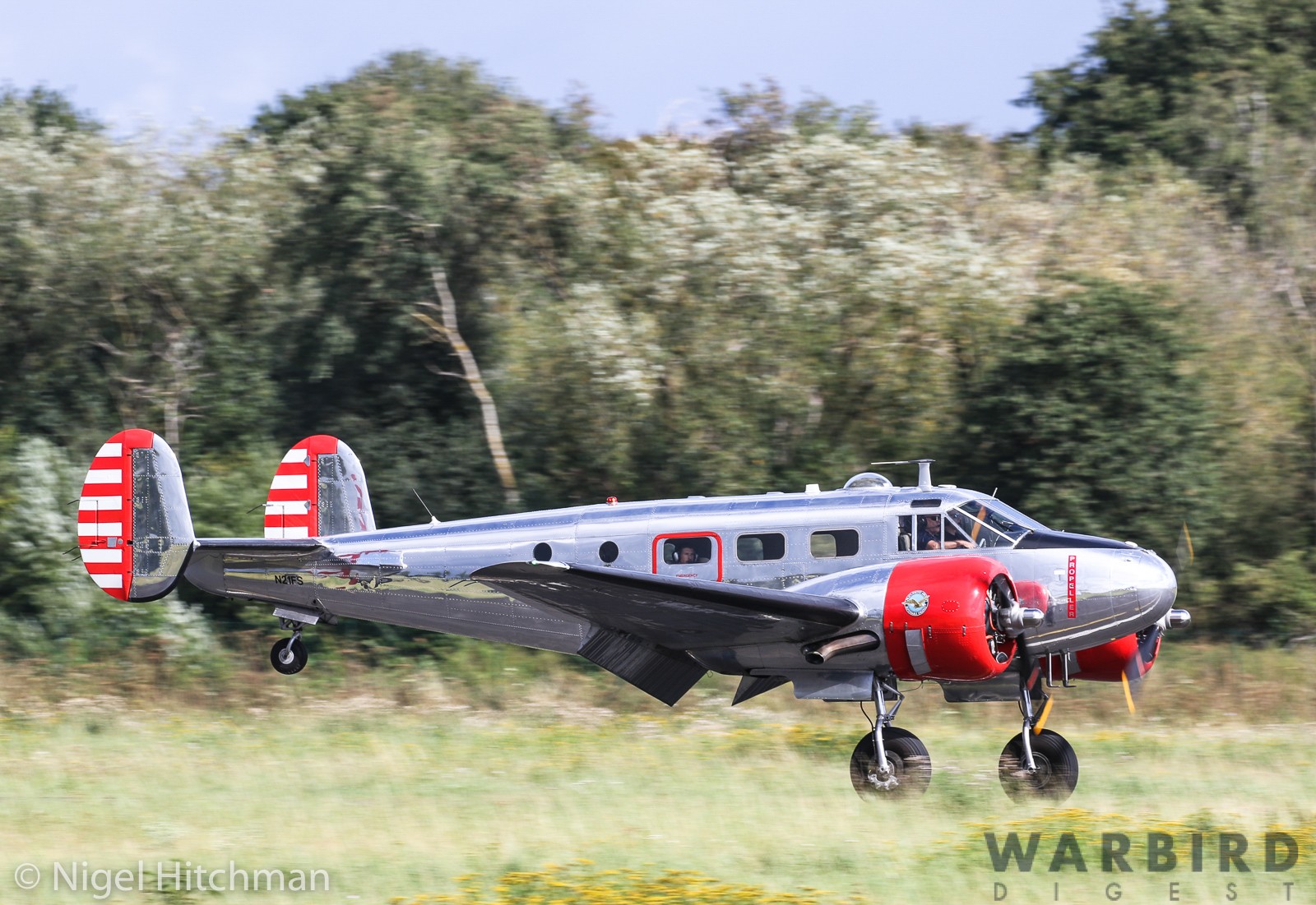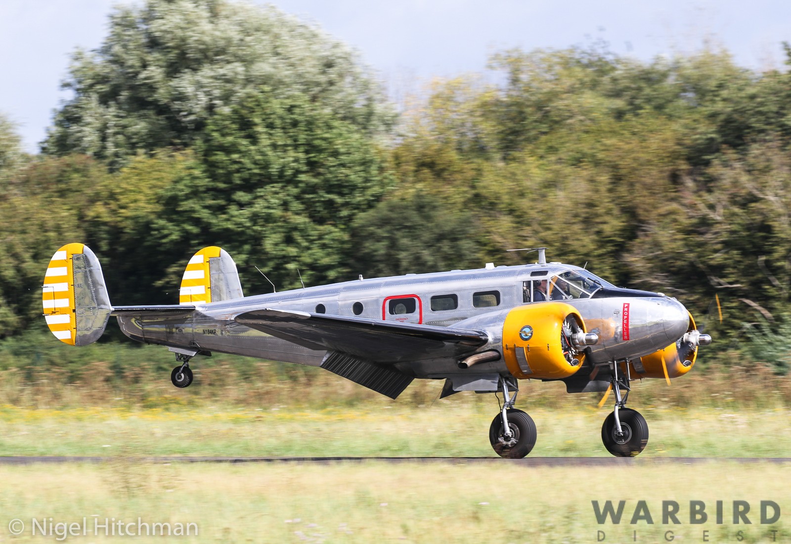 Hugo Mathys former RCAF Beech Expeditor coming in to land, one of three examples he had at the show. This is N184KP (ex-RCAF 1530). (photo by Nigel Hitchman)