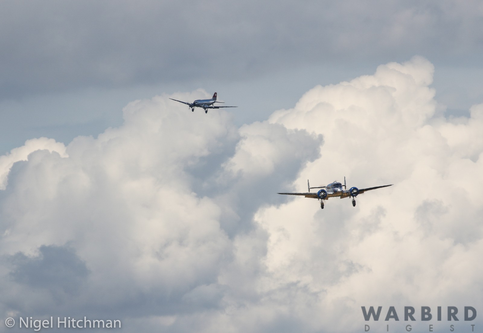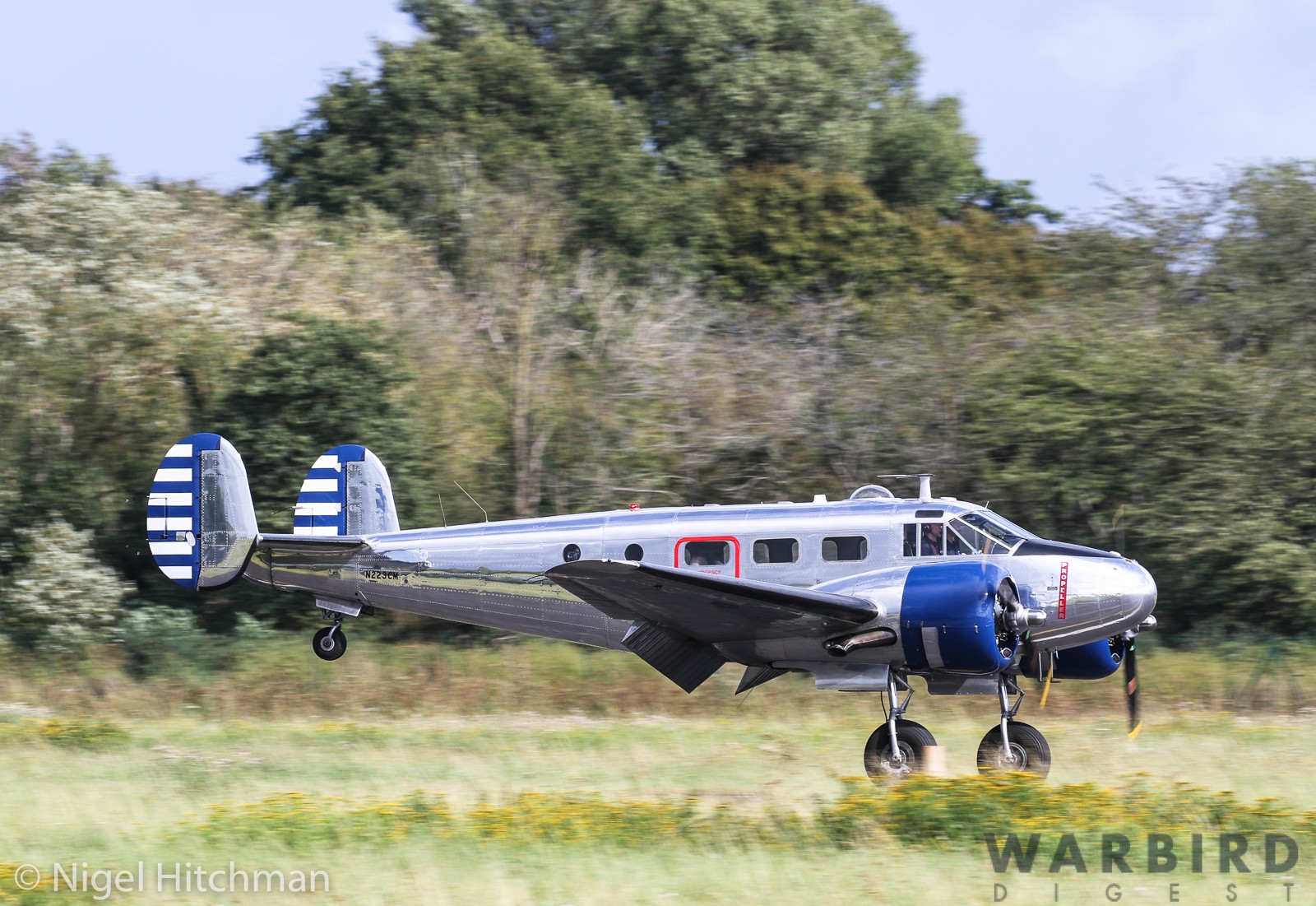 Hugo Mathys former RCAF Beech Expeditor coming in to land, one of three examples he had at the show. This is N223CM (ex-RCAF 2344). (photo by Nigel Hitchman)