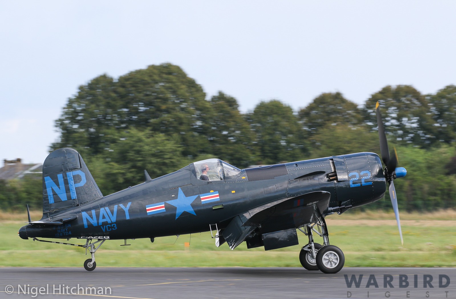 The Fighter Collection’s FG-1D Corsair, marked as an example which served in the Royal Navy’s Fleet Air Arm aboard the carrier HMS Vengeance at the tail end of WWII. (photo by Nigel Hitchman)