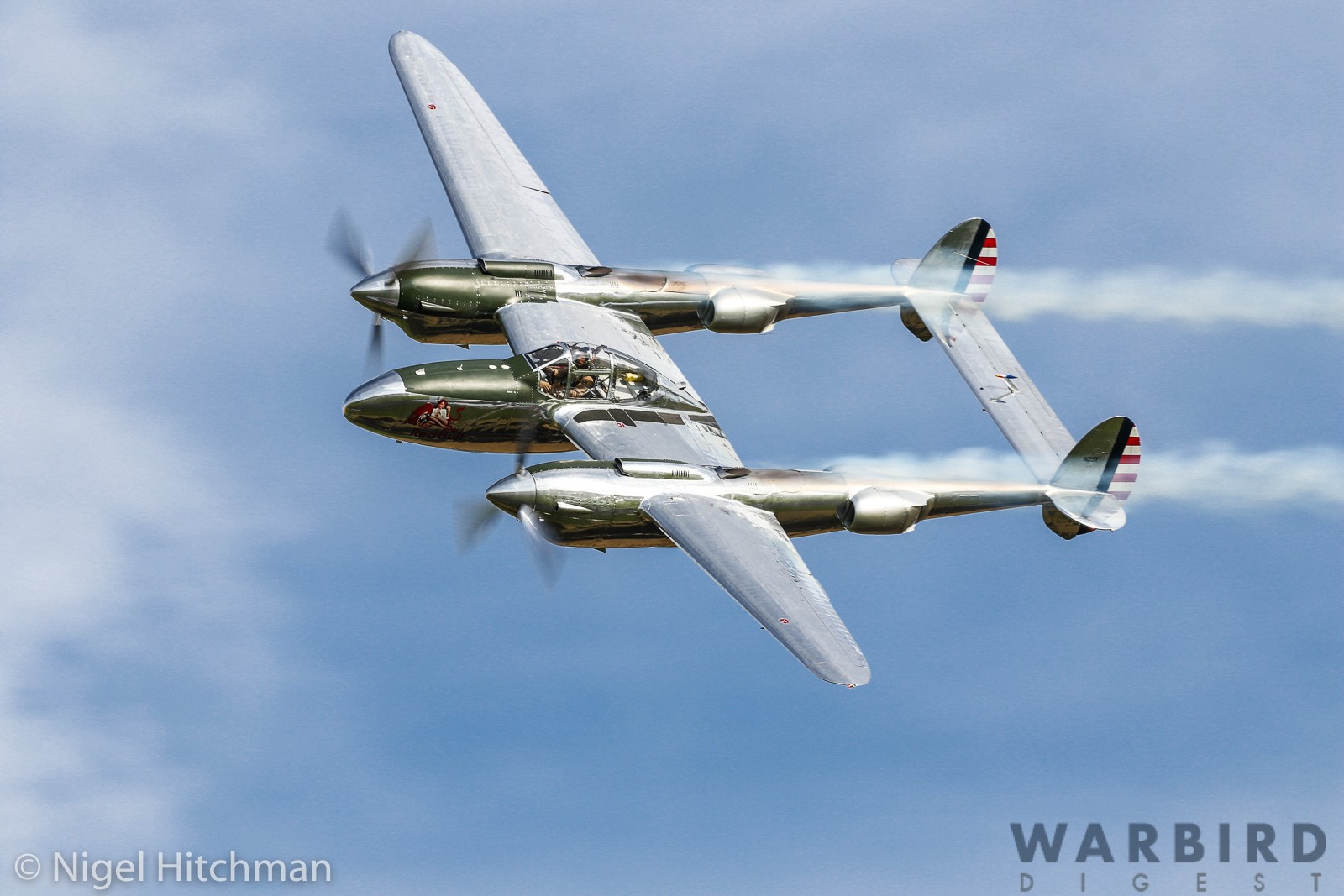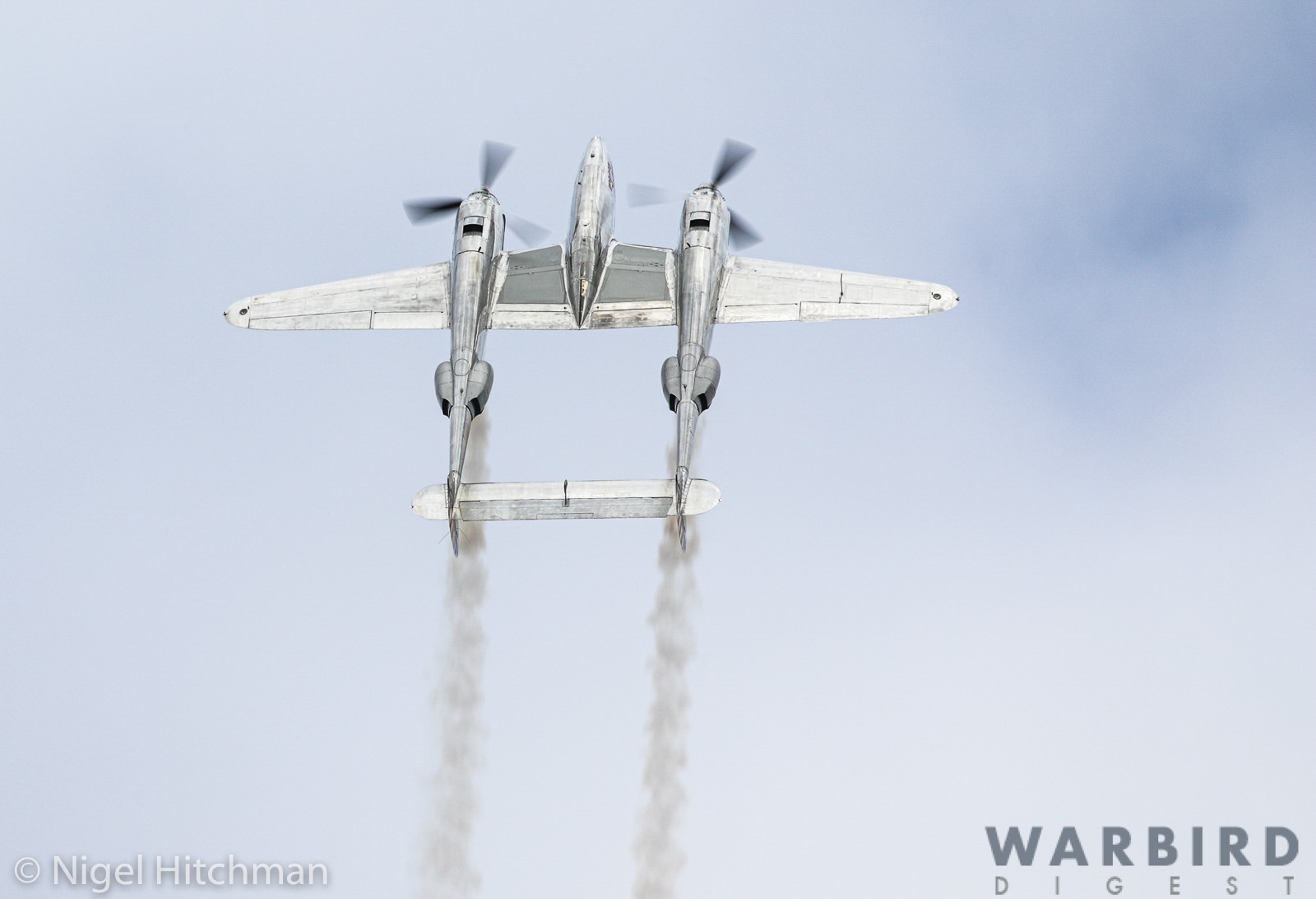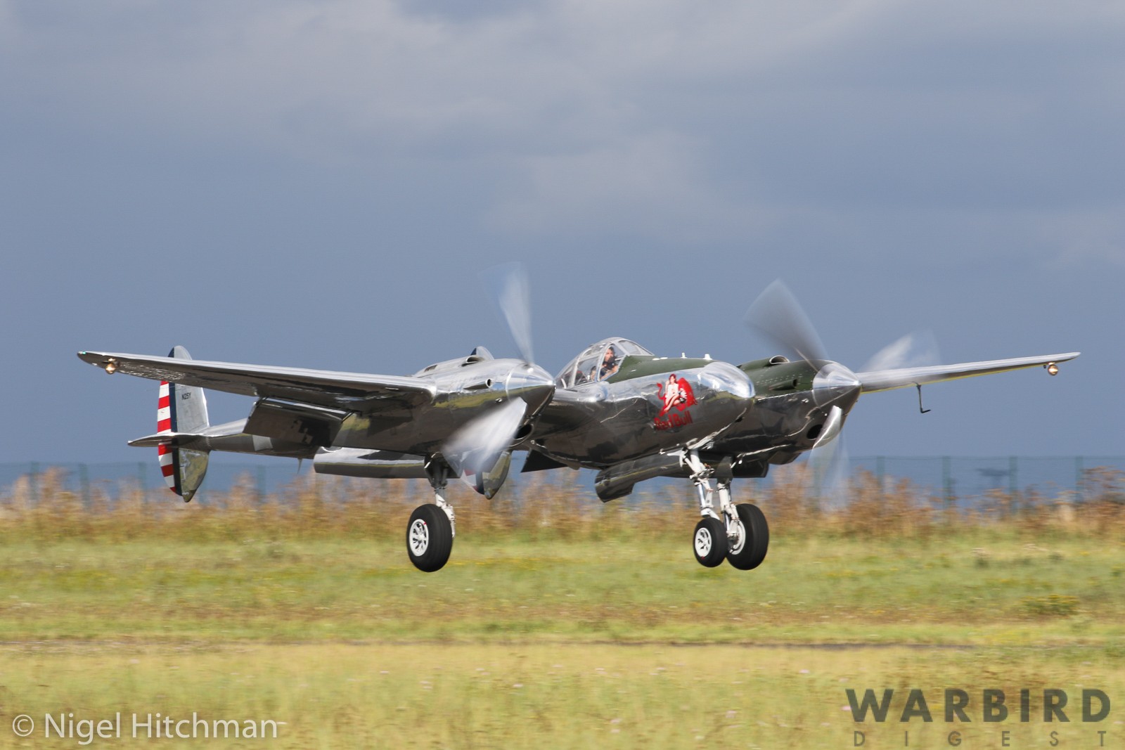 Red Bull’s P-38 about to touch down. (photo by Nigel Hitchman)