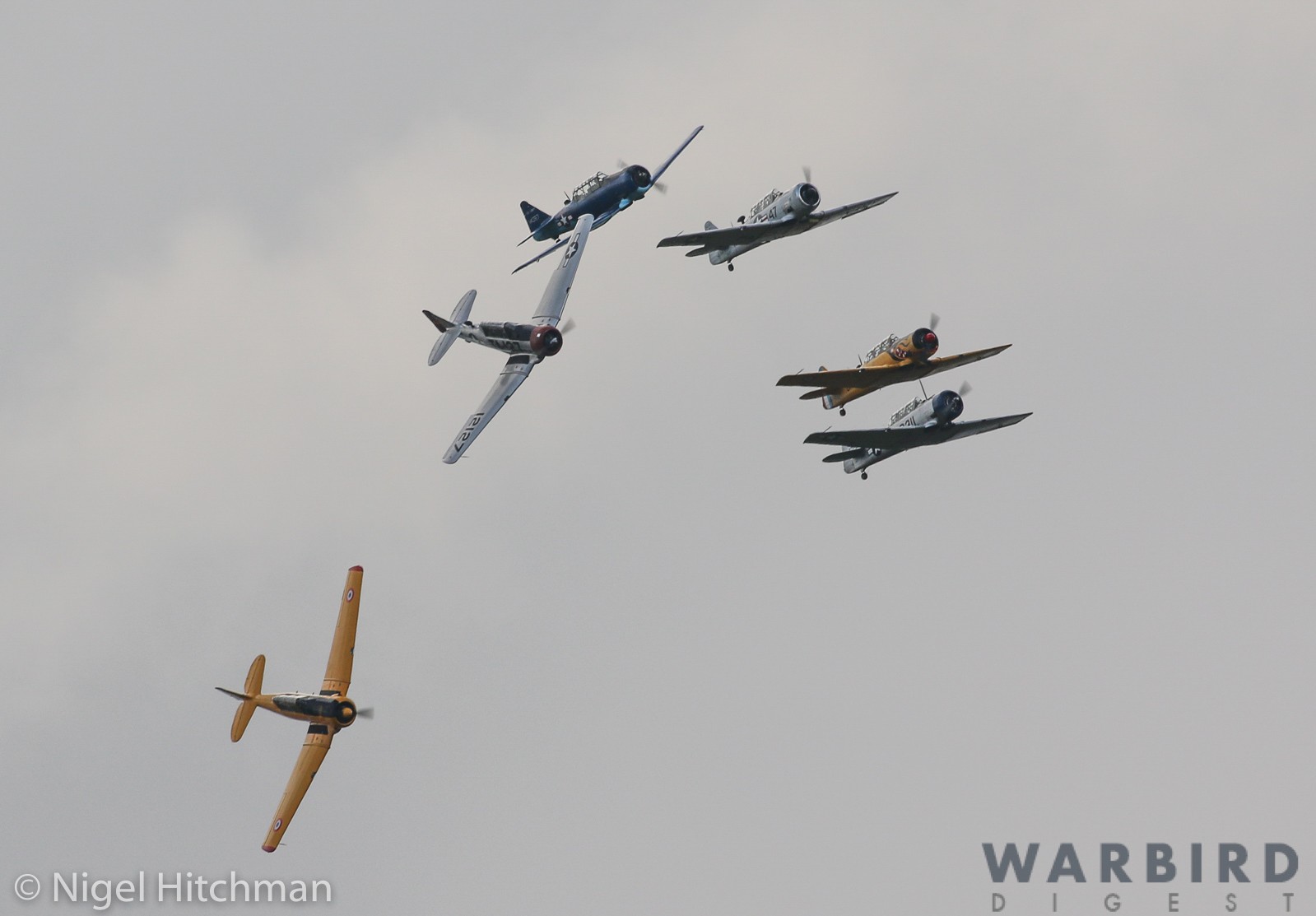 T-6 formation break – simulating the Japanese attack on Pearl Harbor. (photo by Nigel Hitchman)