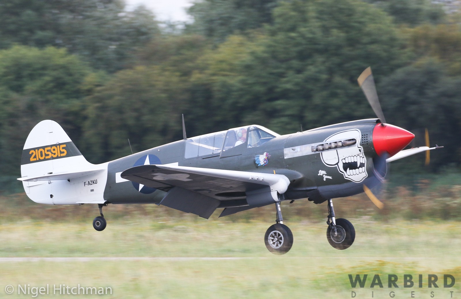 Curtiss P-40N Warhawk 42-105915 (F-AZKU), with Chris Prevost at the controls, launches to take on the enemy. (photo by Nigel Hitchman)