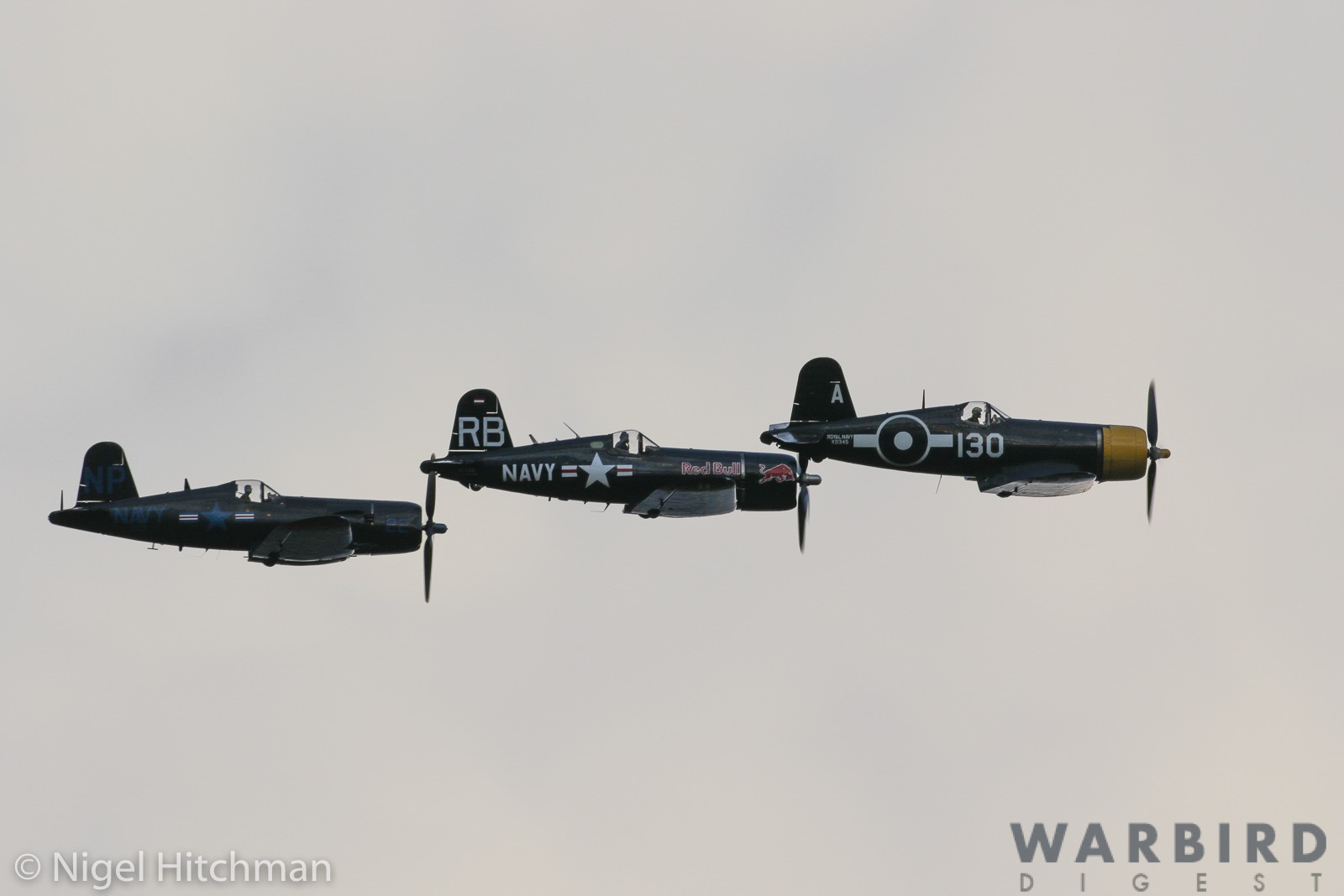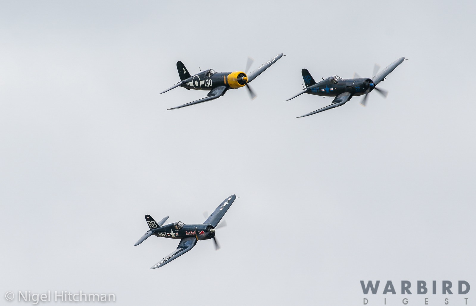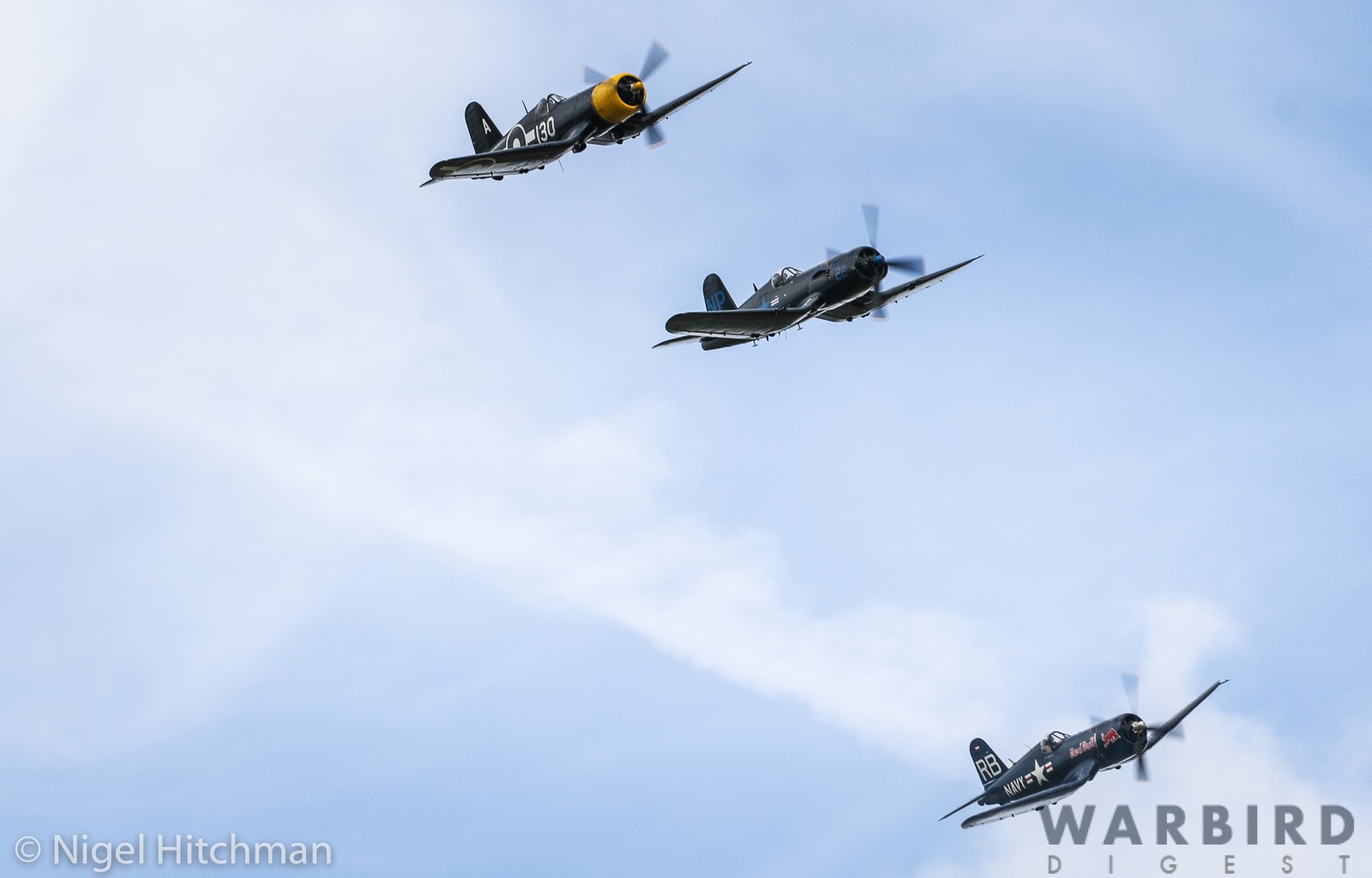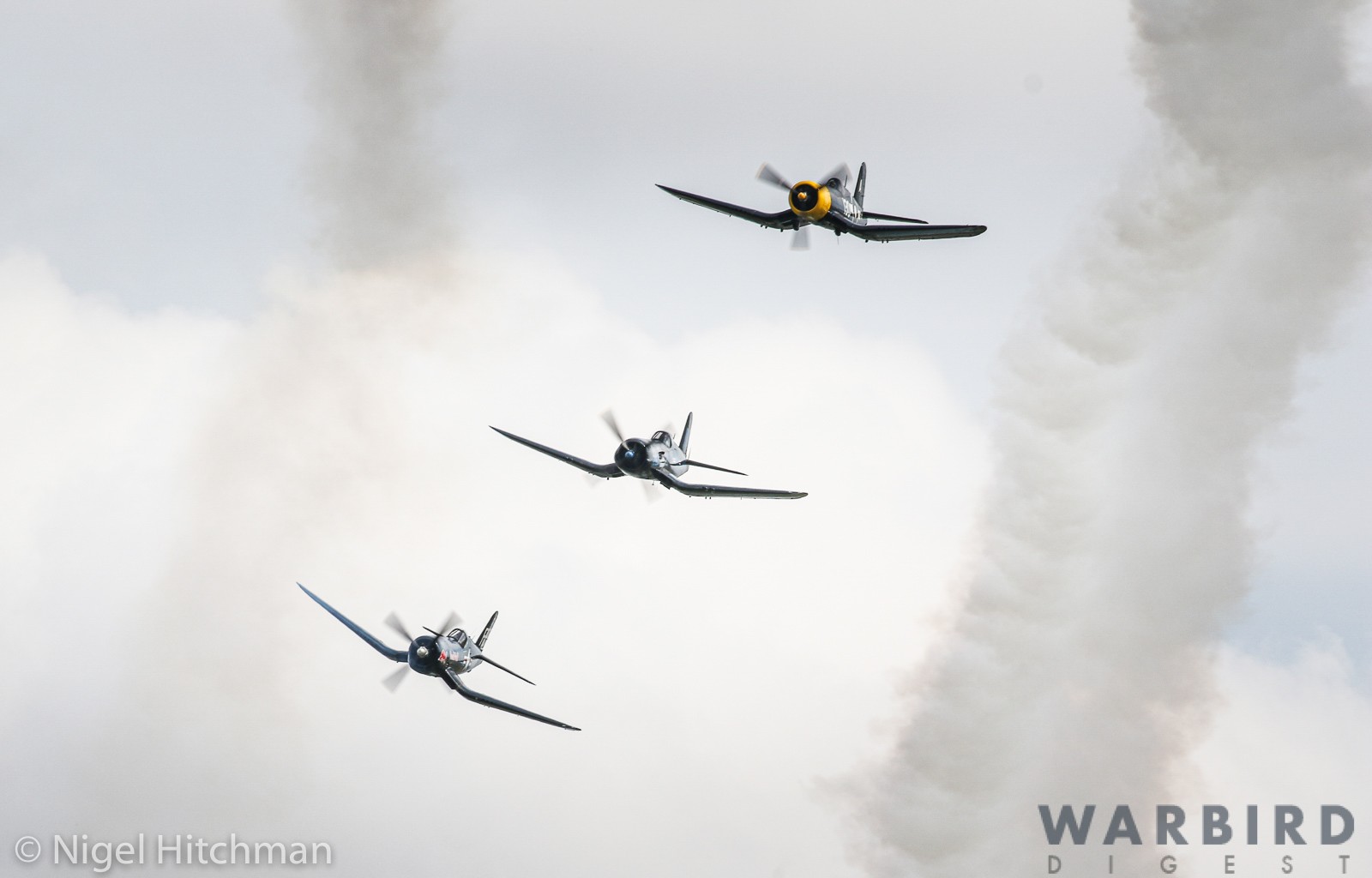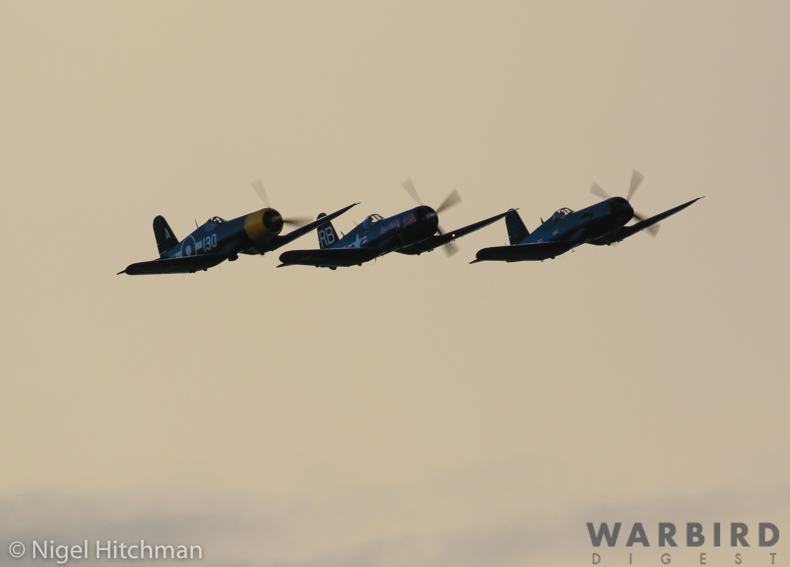 The Corsairs made a brief three-ship formation appearance as they came in to intercept the ‘Zeros’. (photo by Nigel Hitchman)