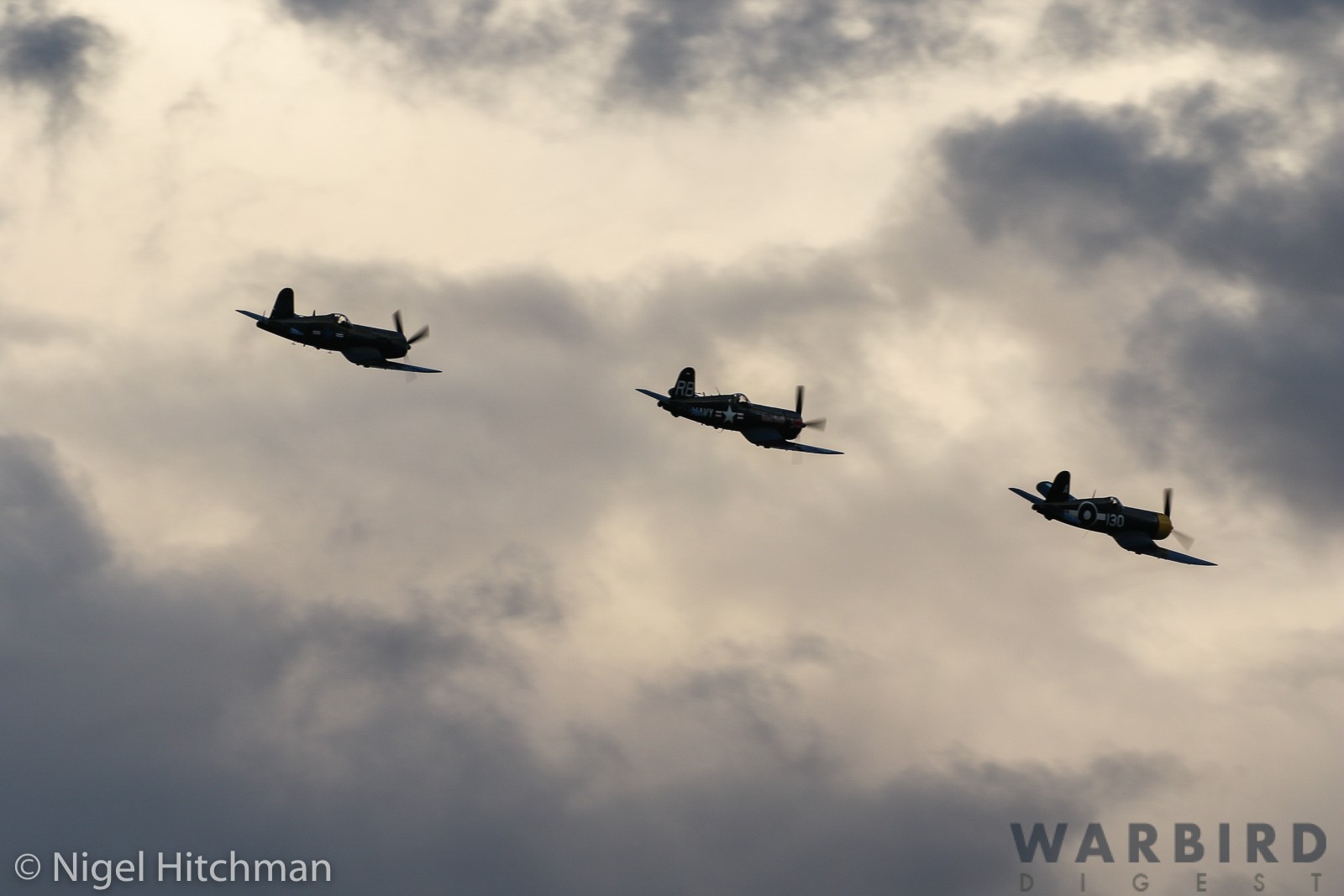 A gorgeous, moody shot of the Corsair three-ship formation. (photo by Nigel Hitchman)