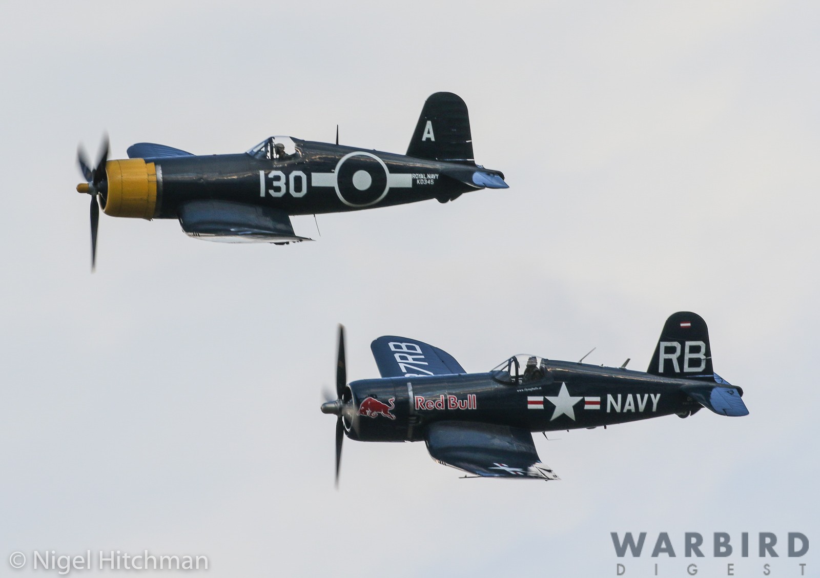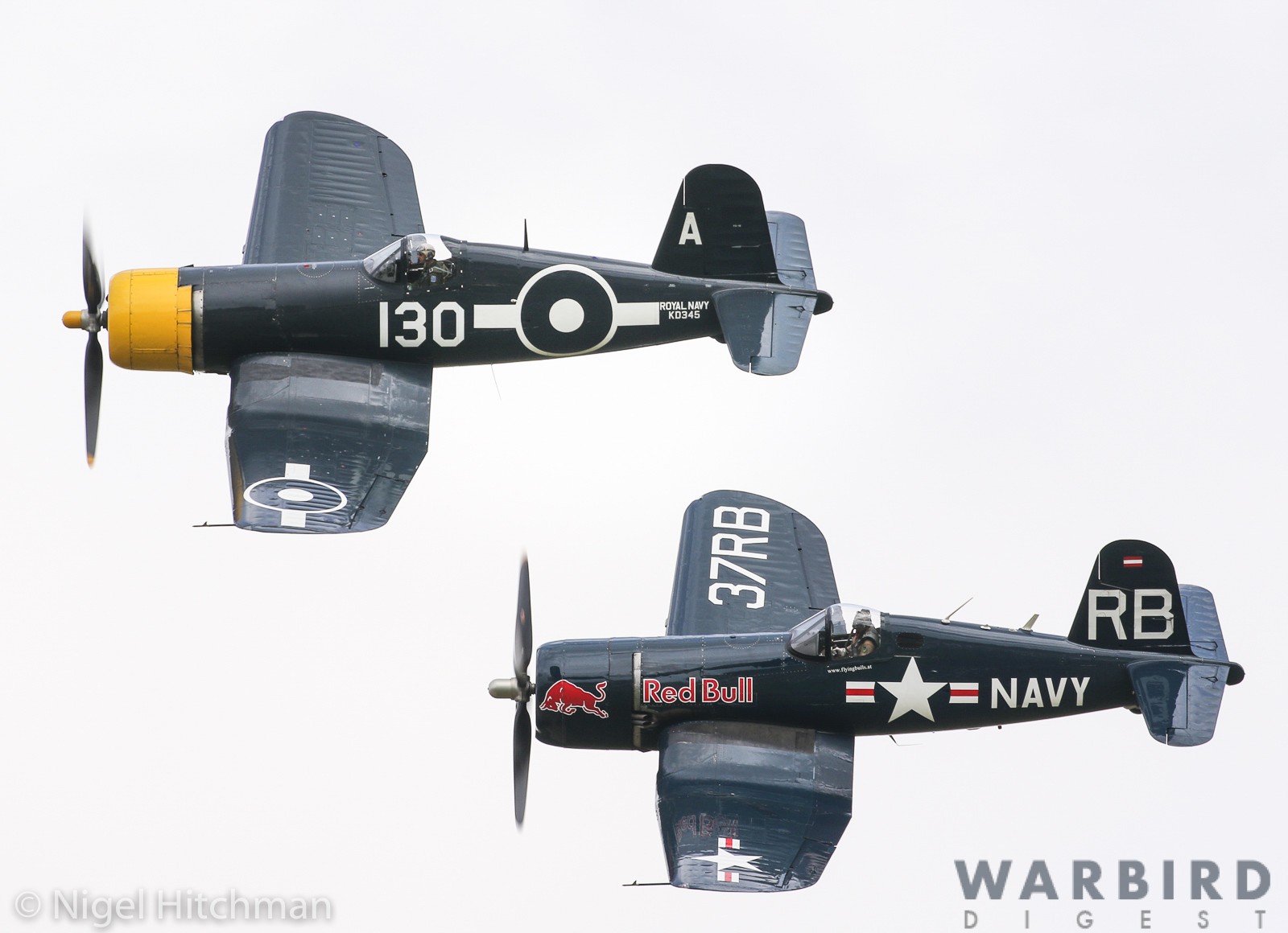 The Red Bull F4U-4 and TFC FG-1D made a fantastic formation aerobatics display. (photo by Nigel Hitchman)