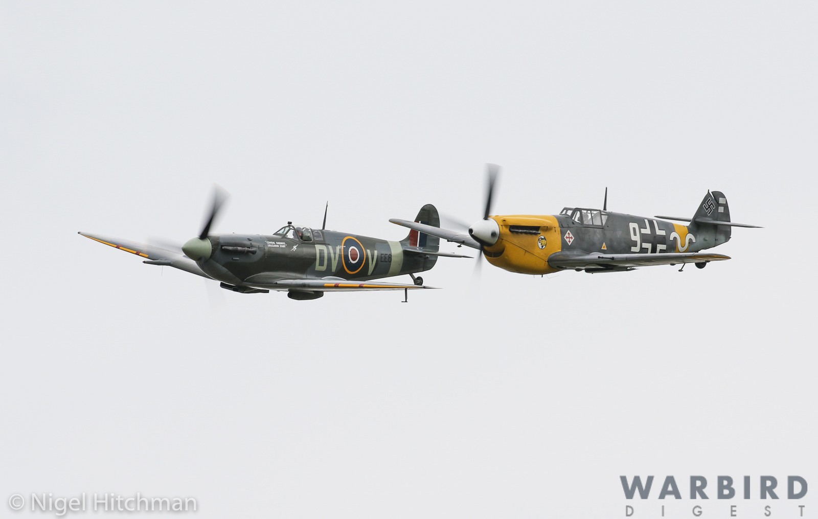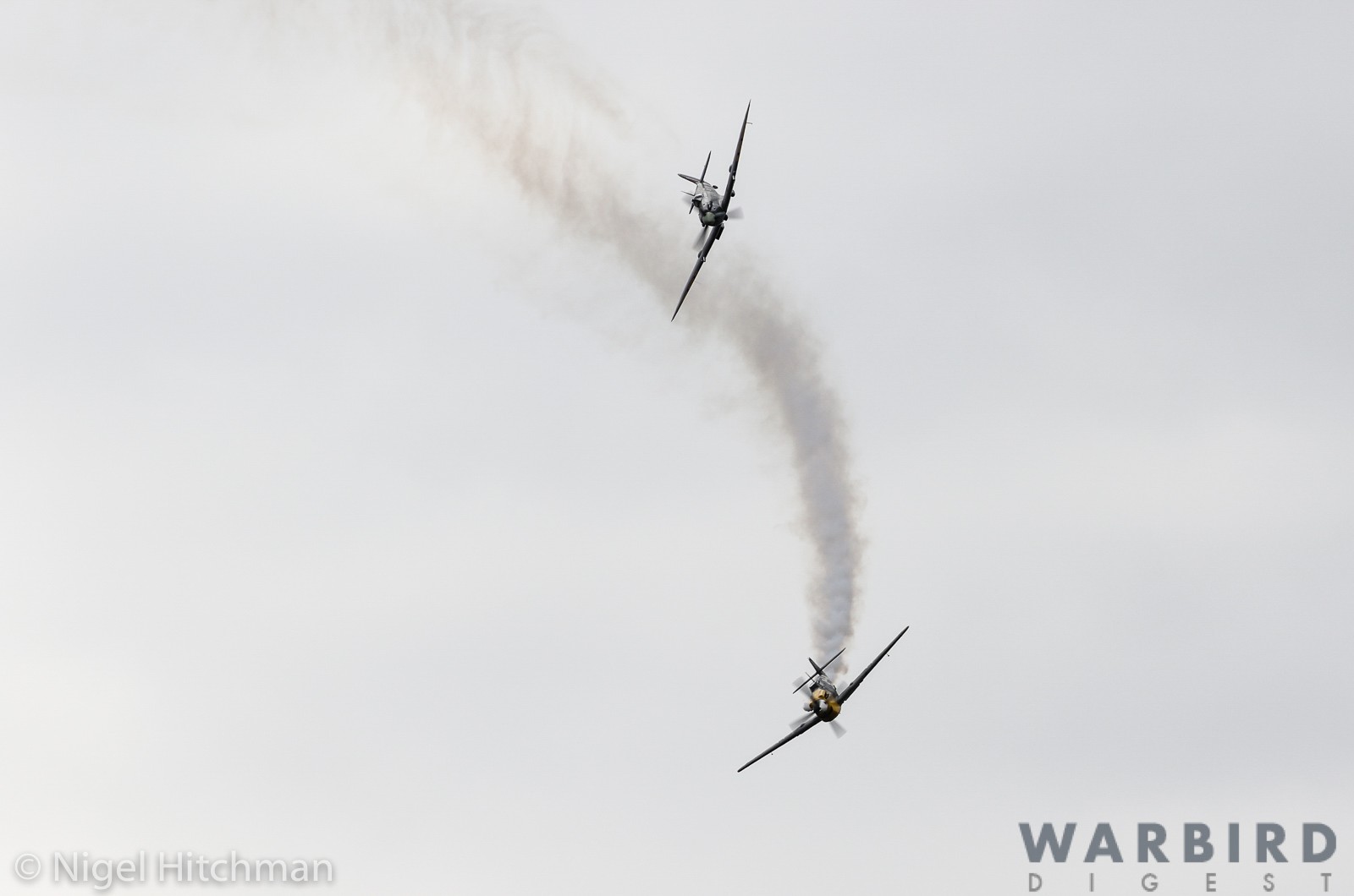 The Spitfire dispatching the “Messerschmit”. (photo by Nigel Hitchman)