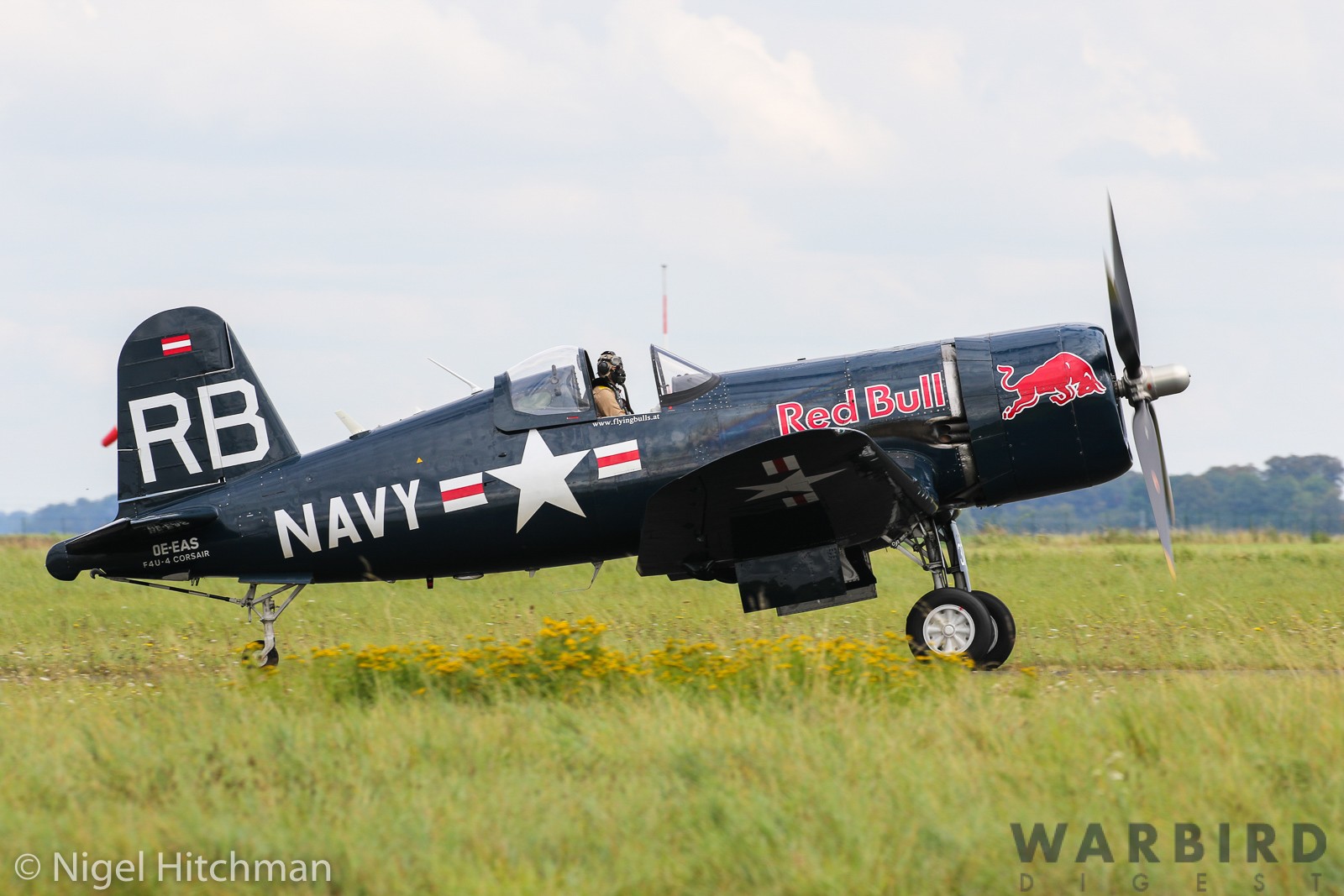 Red Bull’s F4U-4 taxiing in after her display. (photo by Nigel Hitchman)